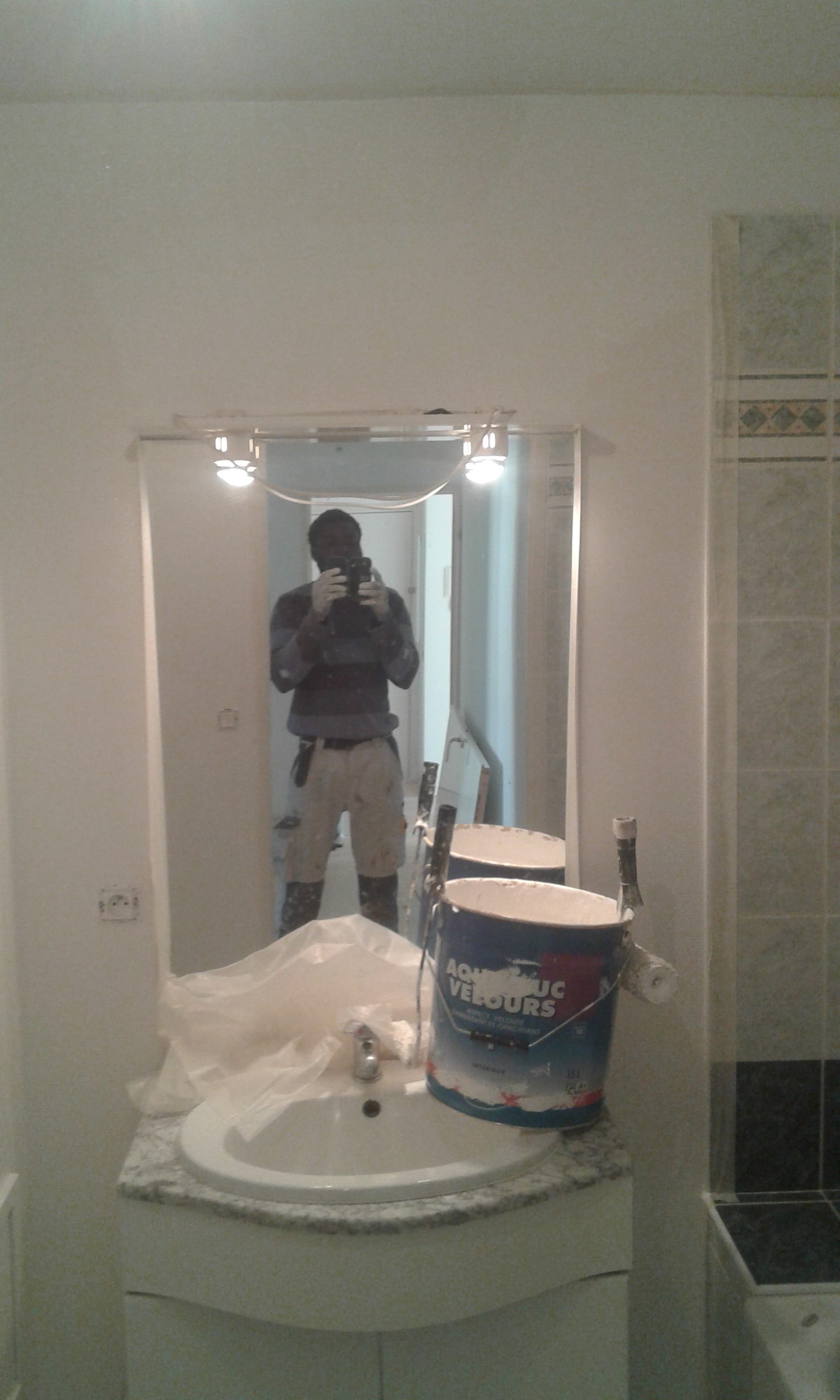 Enfin, n’oublions pas les plafonds ! Pour cette partie nous avons utilisé une autre peinture plus adaptée.