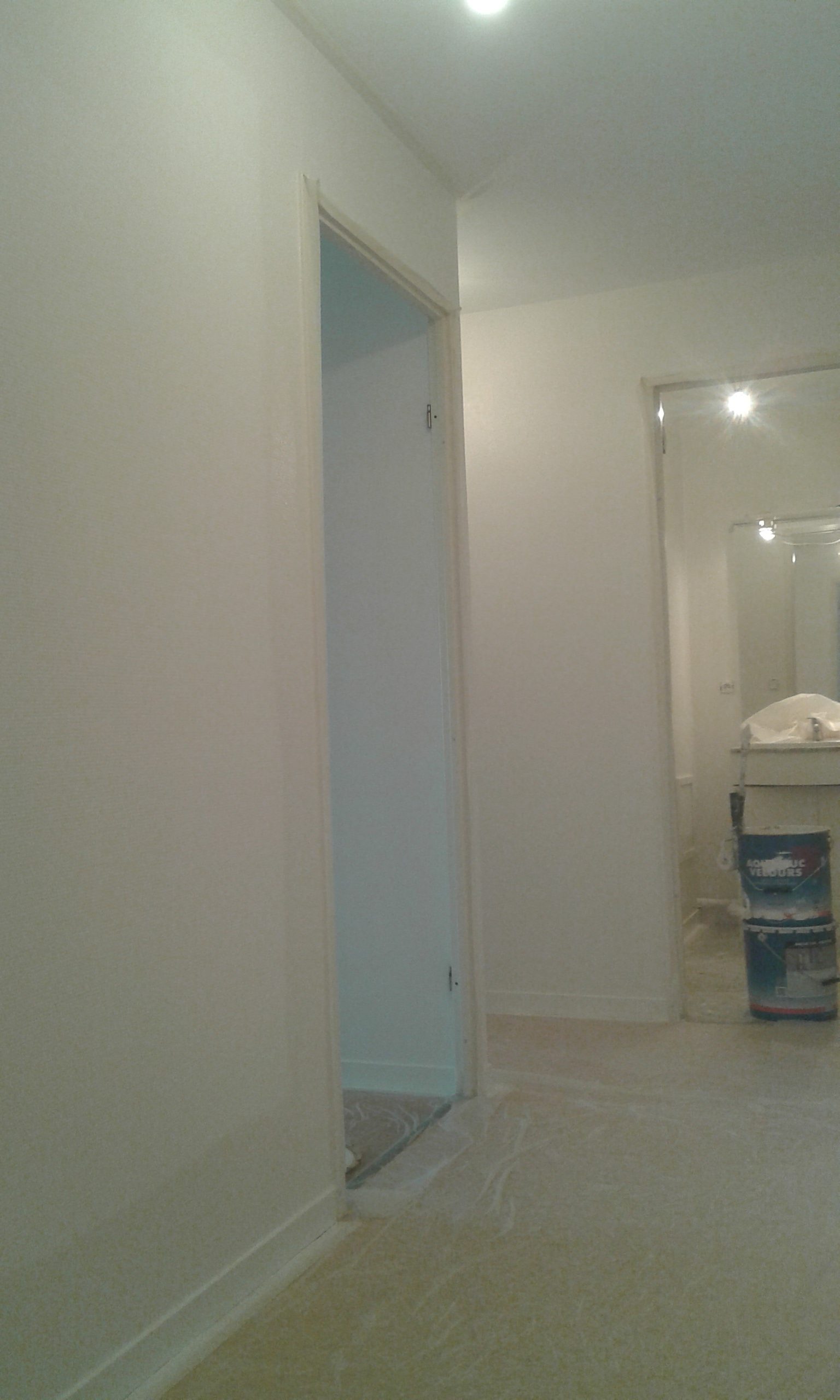 Lors de l’intervention, il a également fallu mettre en peinture les plinthes et les portes. Pour cela, nous avons utilisé une peinture différente afin de répondre à la différence de support.