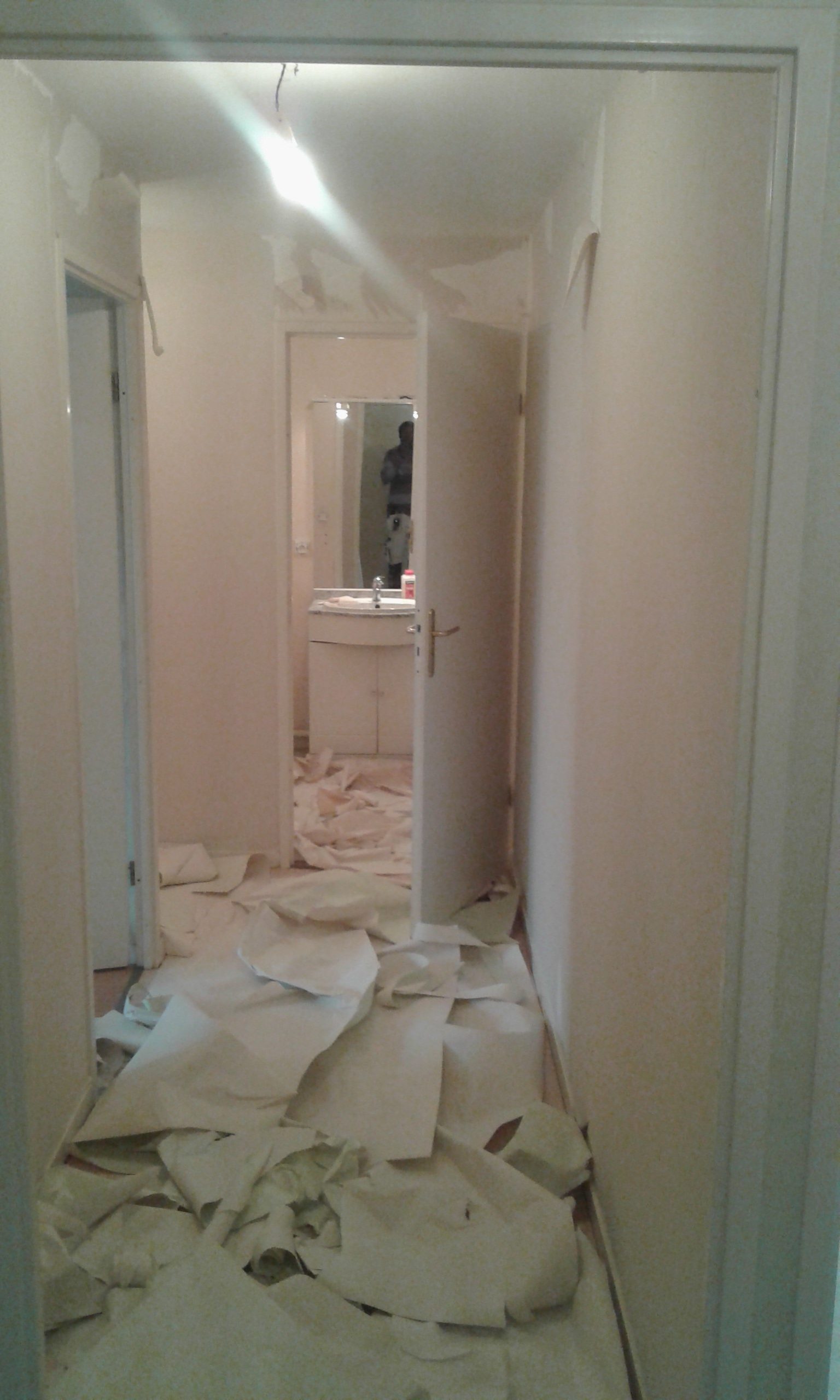 Préparation du couloir : décollage papier peint