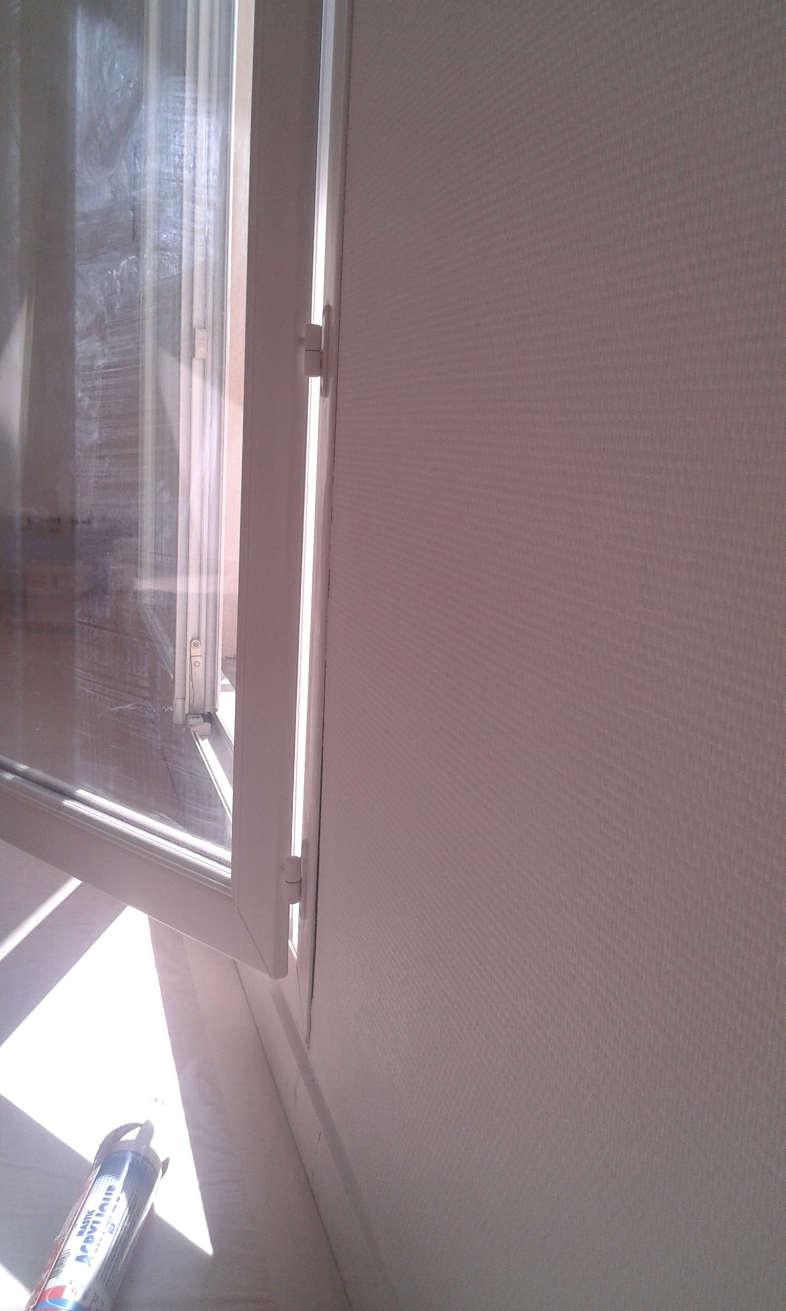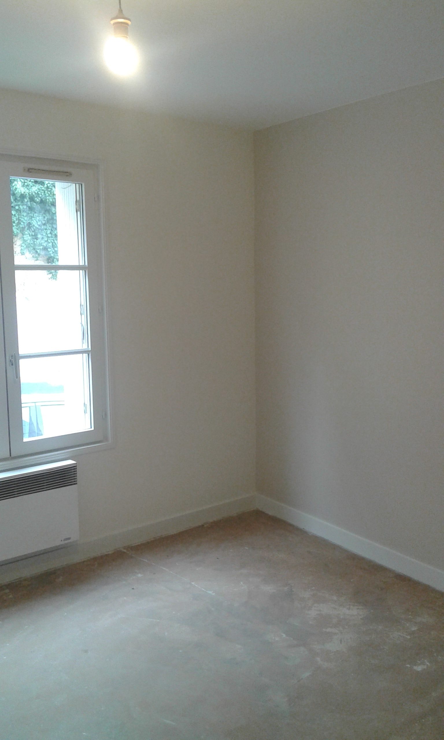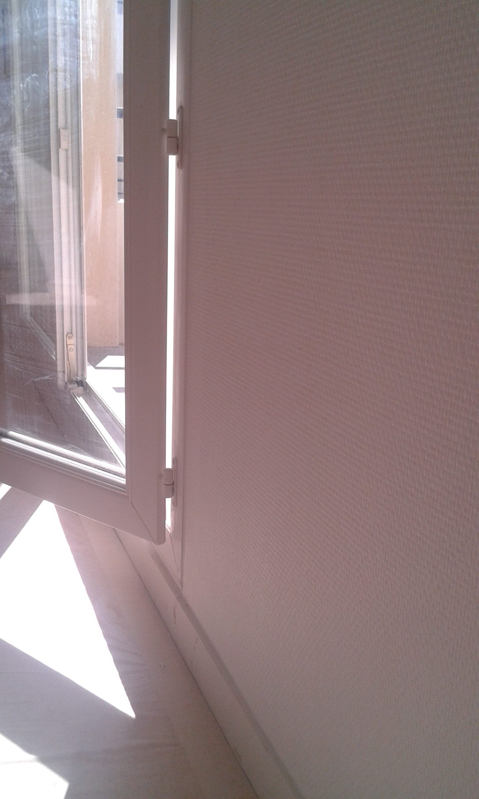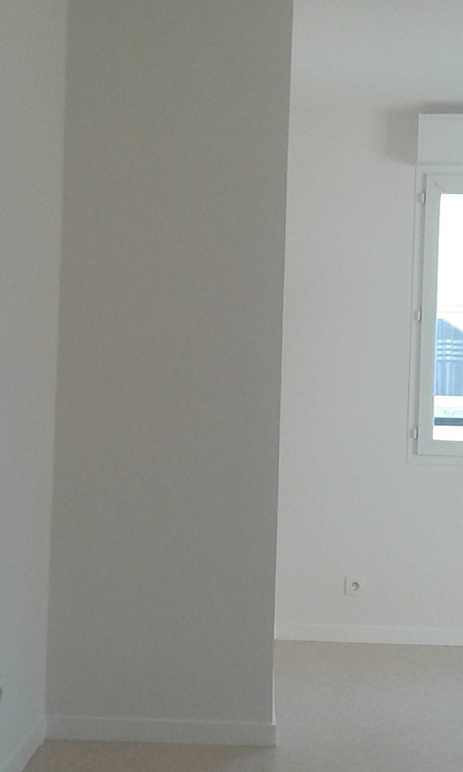 Mur avec fenêtre et plinthes entièrement repeint en blanc