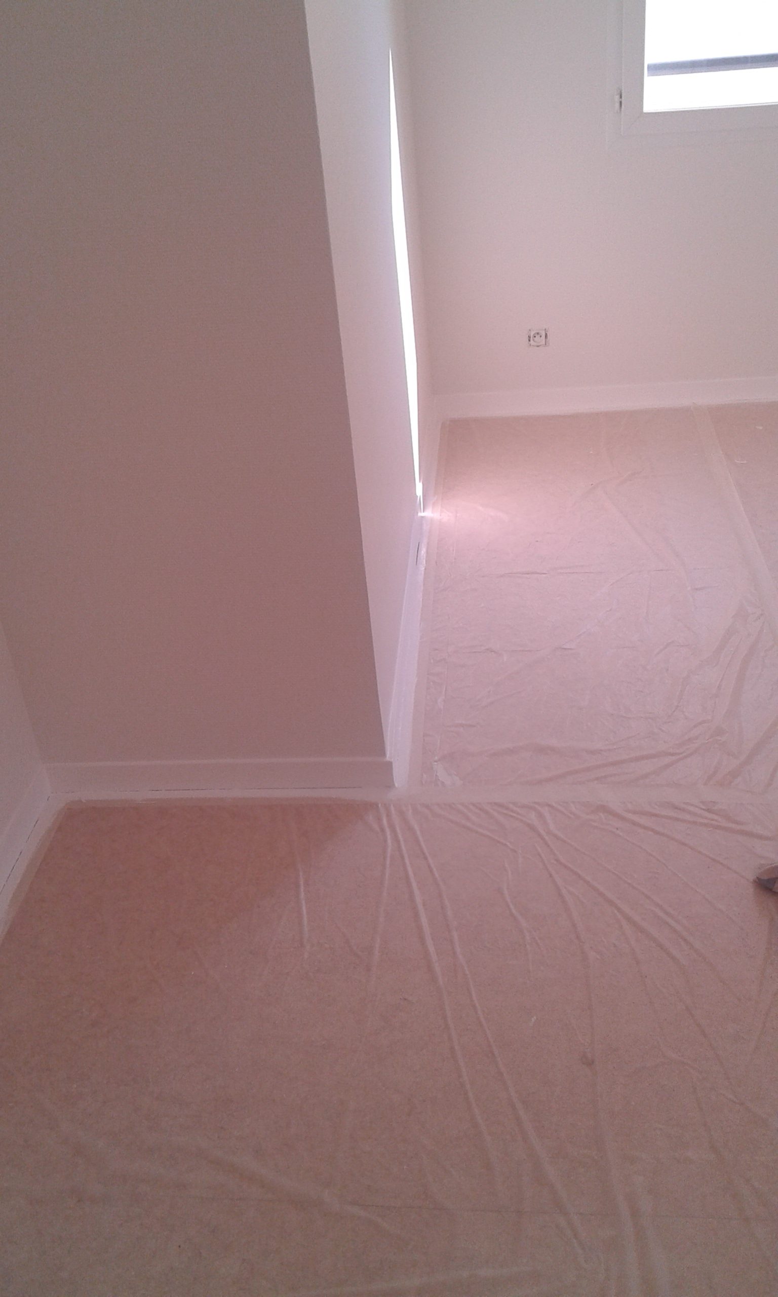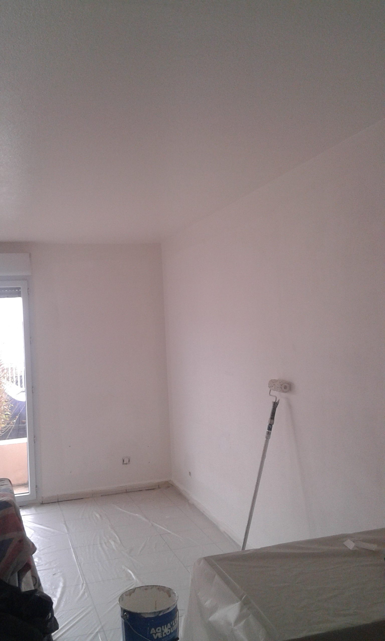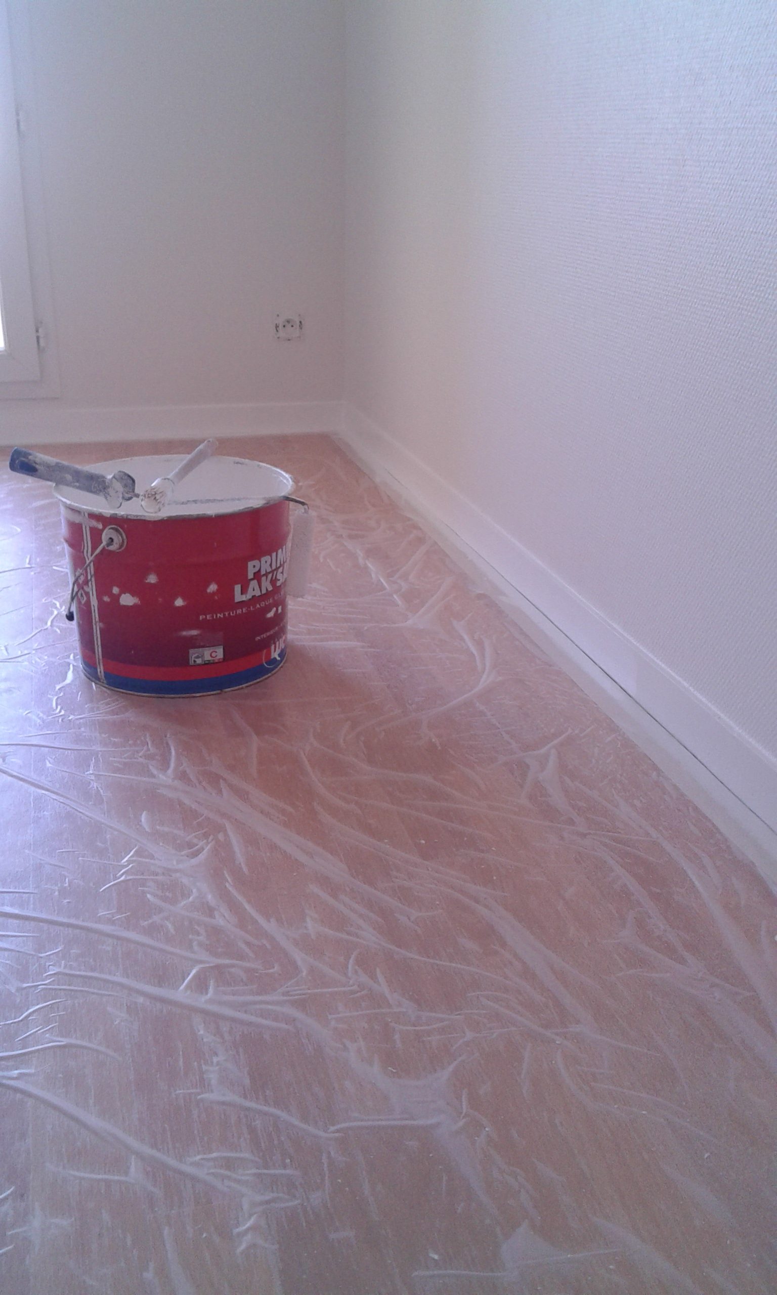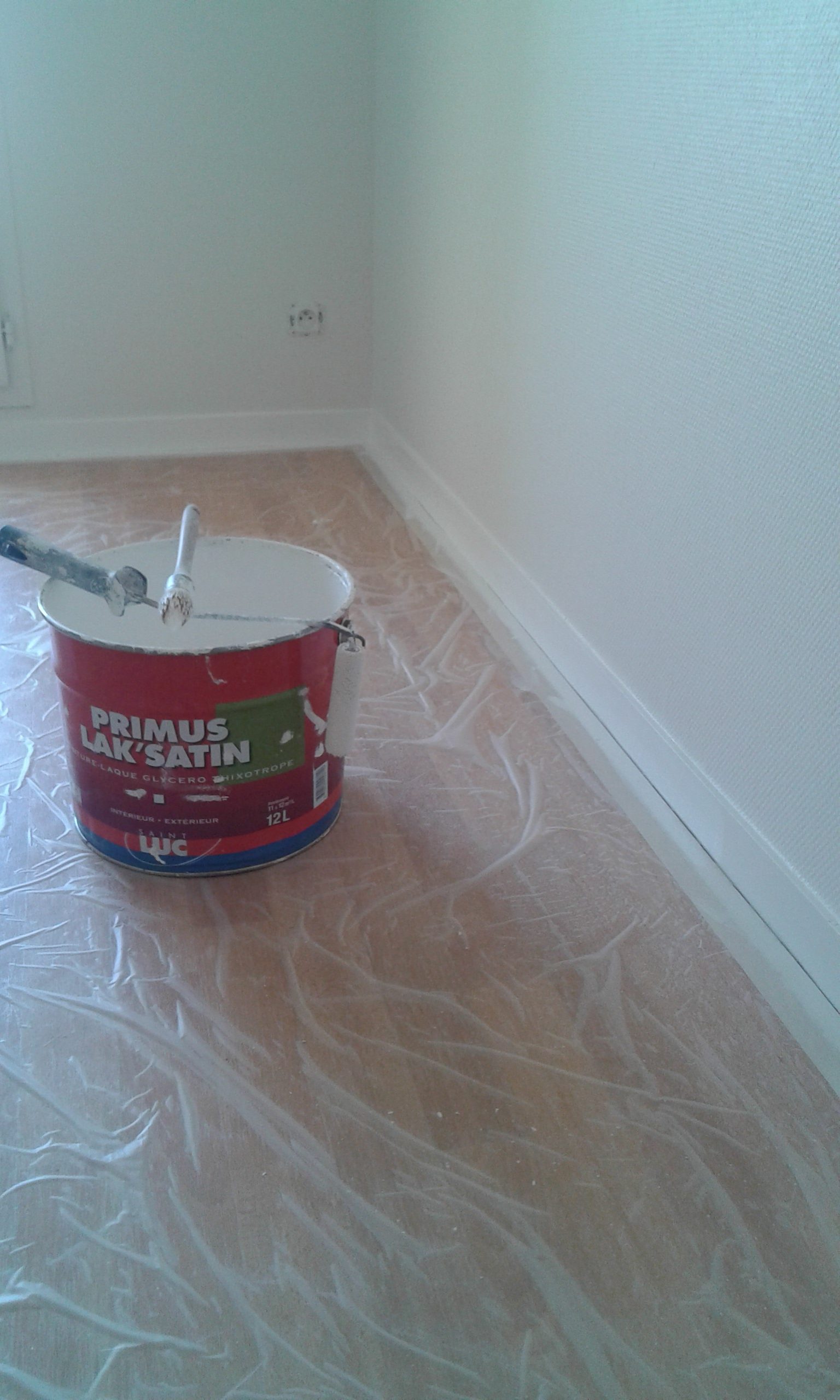 Toile de verre et plinthes peintes en blanc