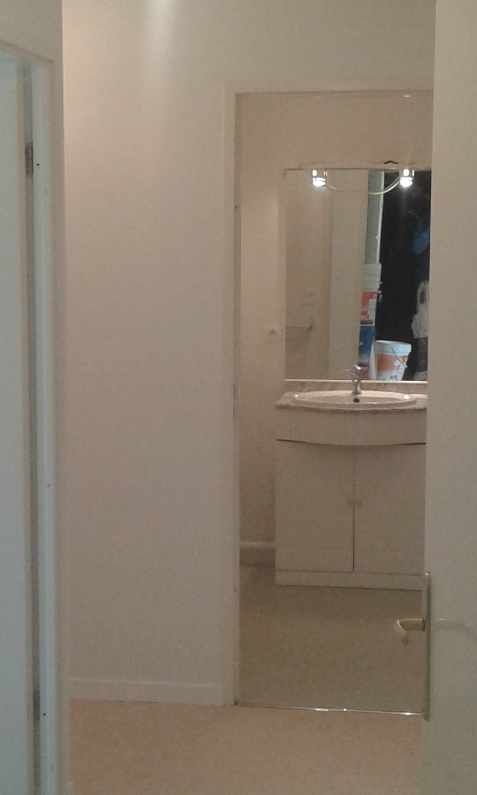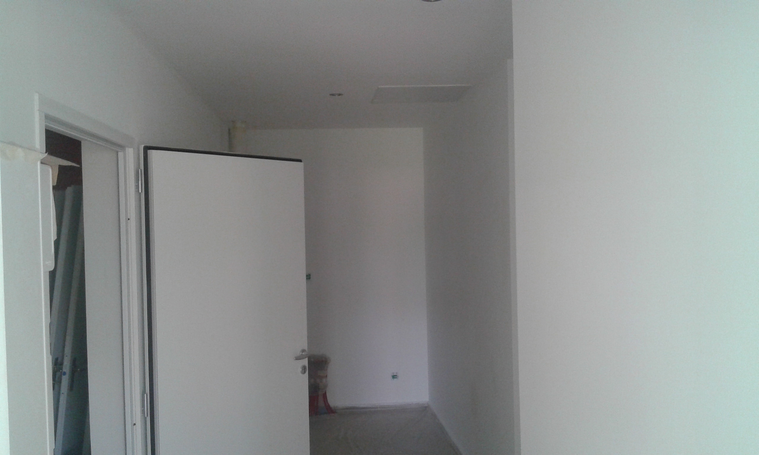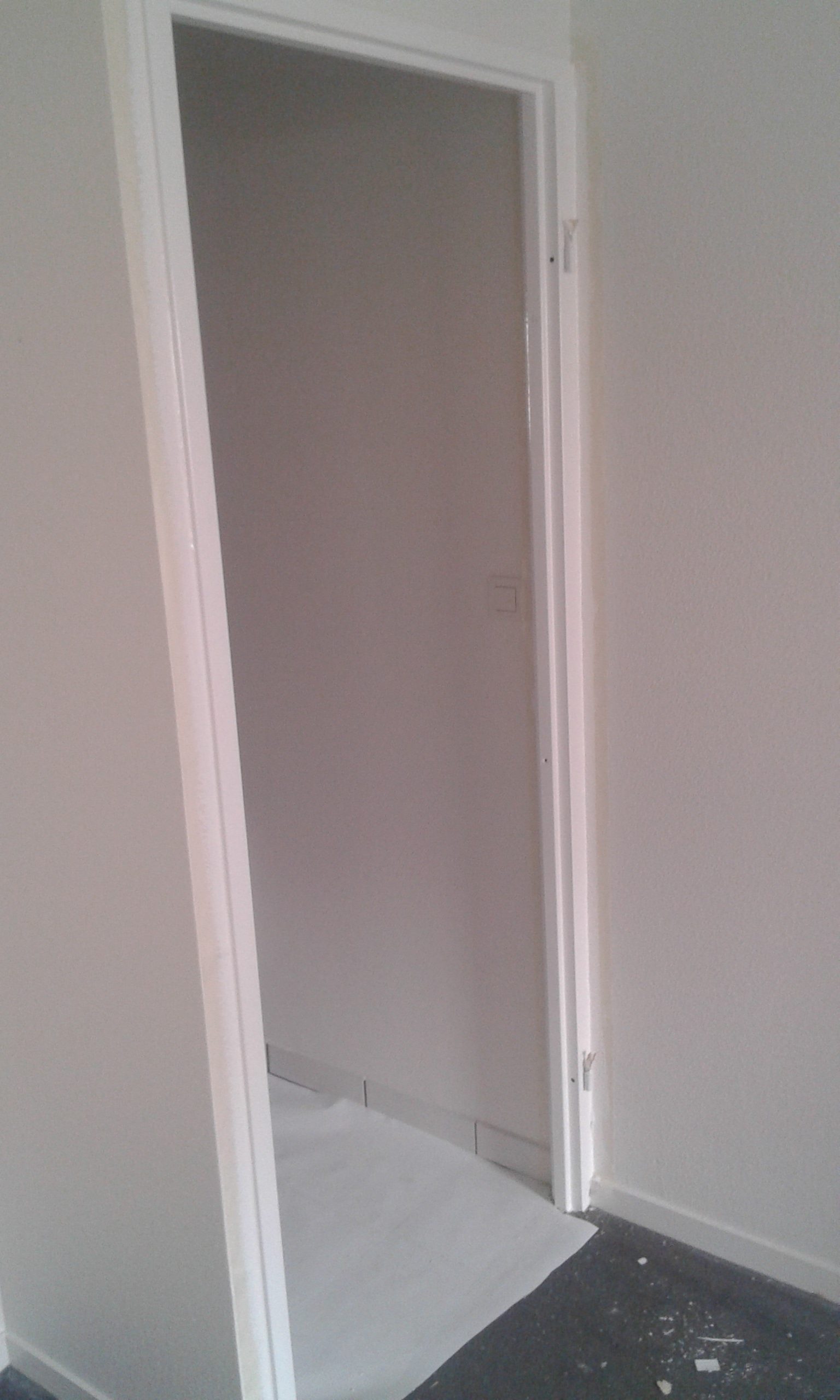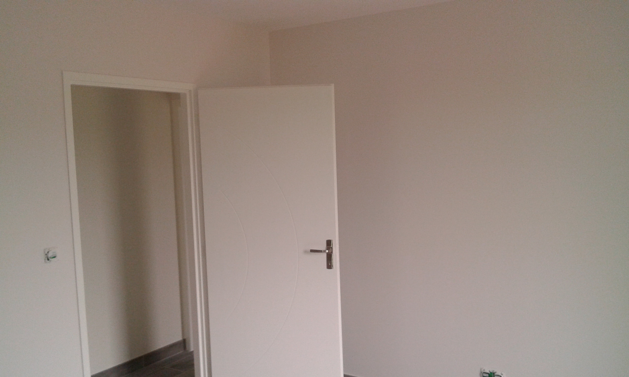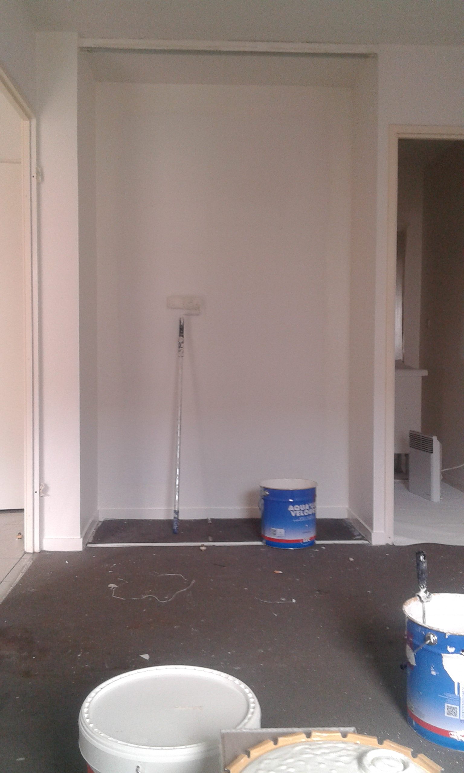 Murs, placard, plafond, porte et plinthes peints en blanc