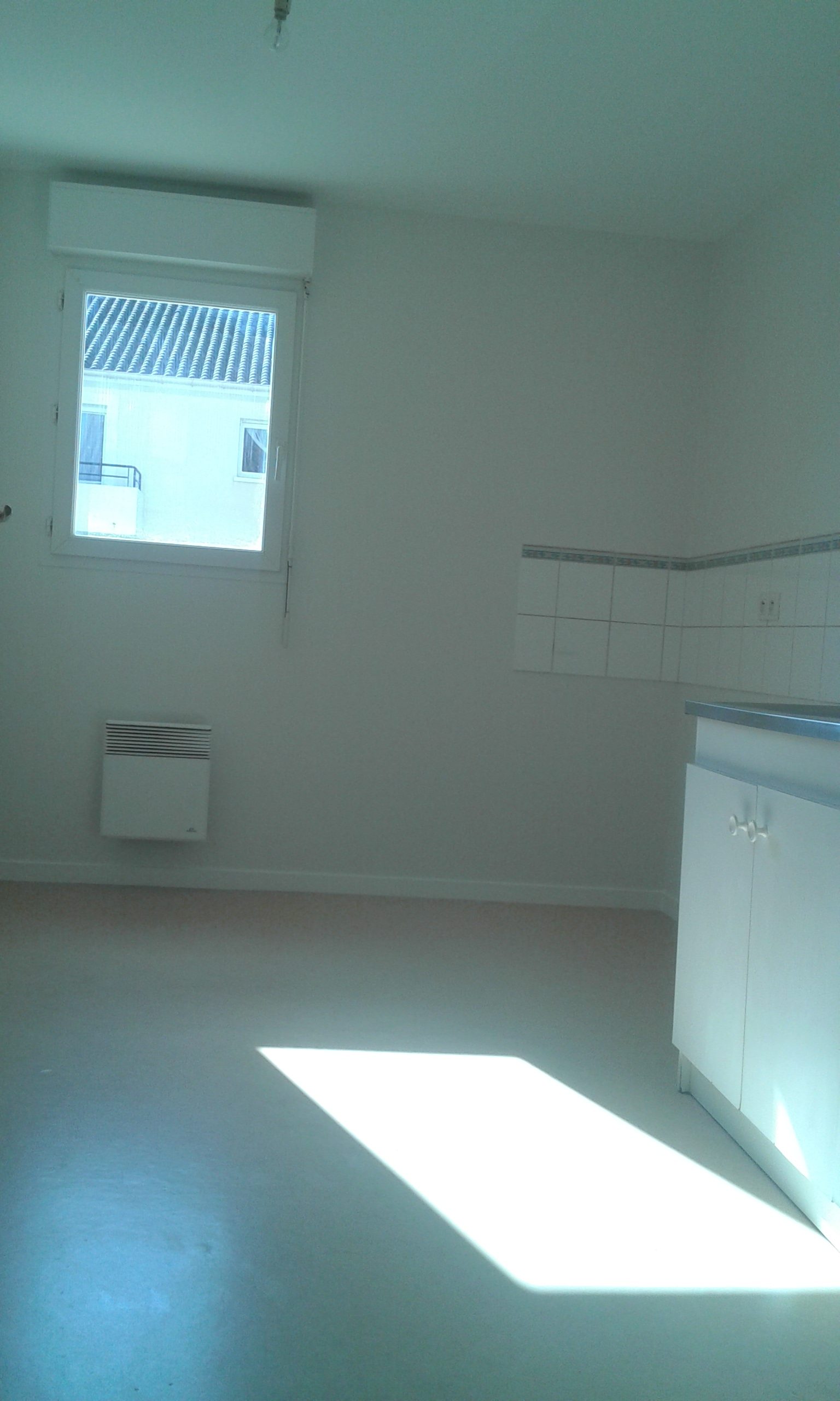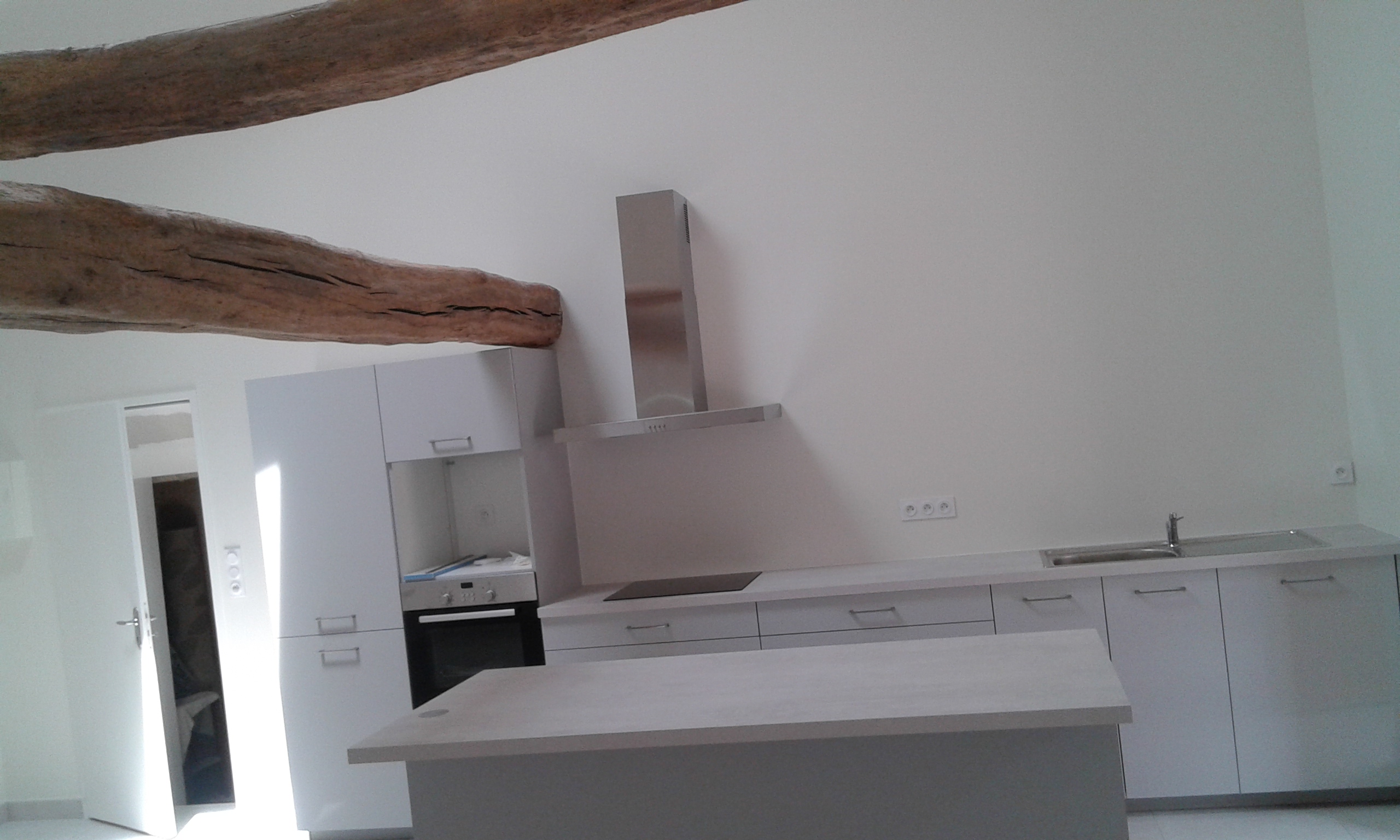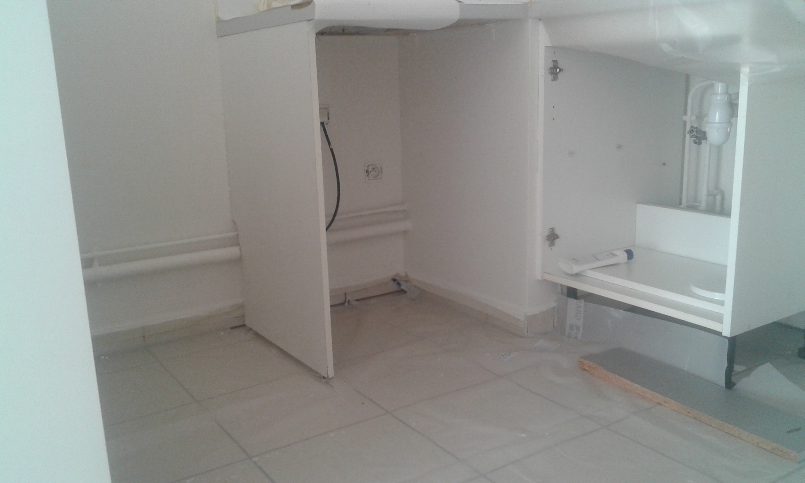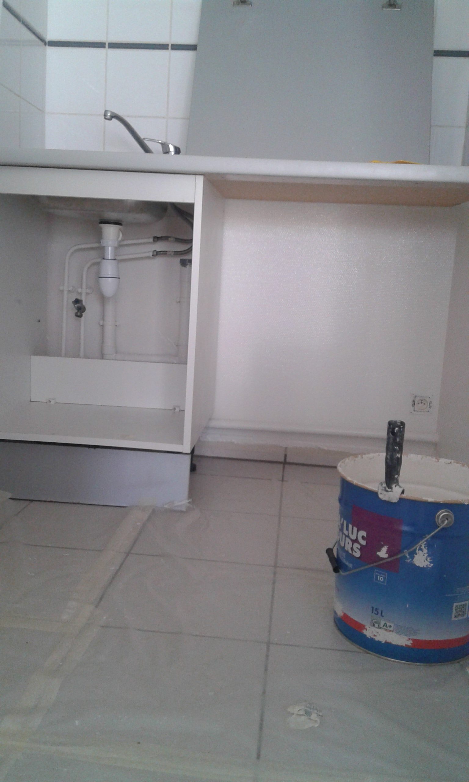 La cuisine avec un sol refait.