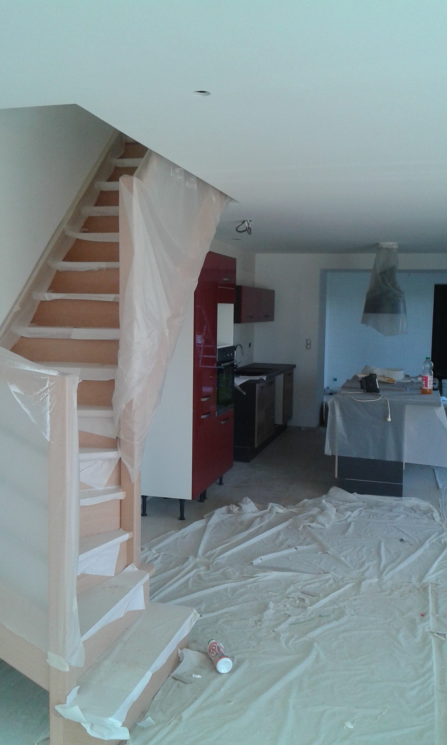 Peinture blanche sur les murs au niveau de l’escalier