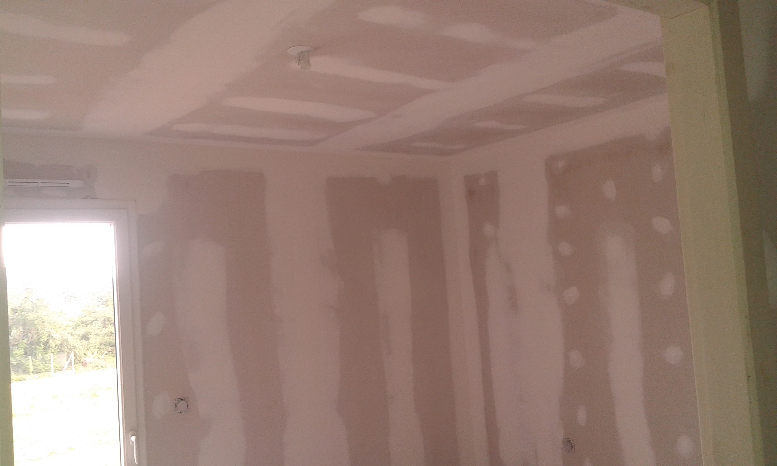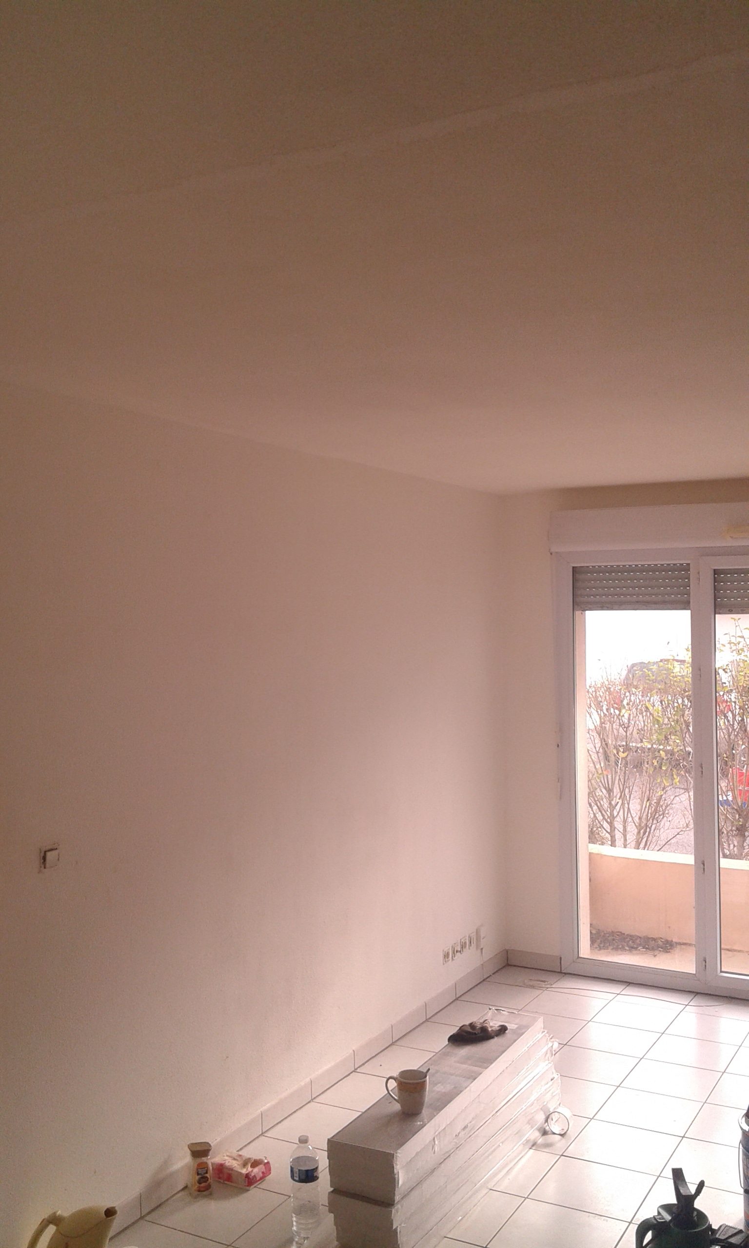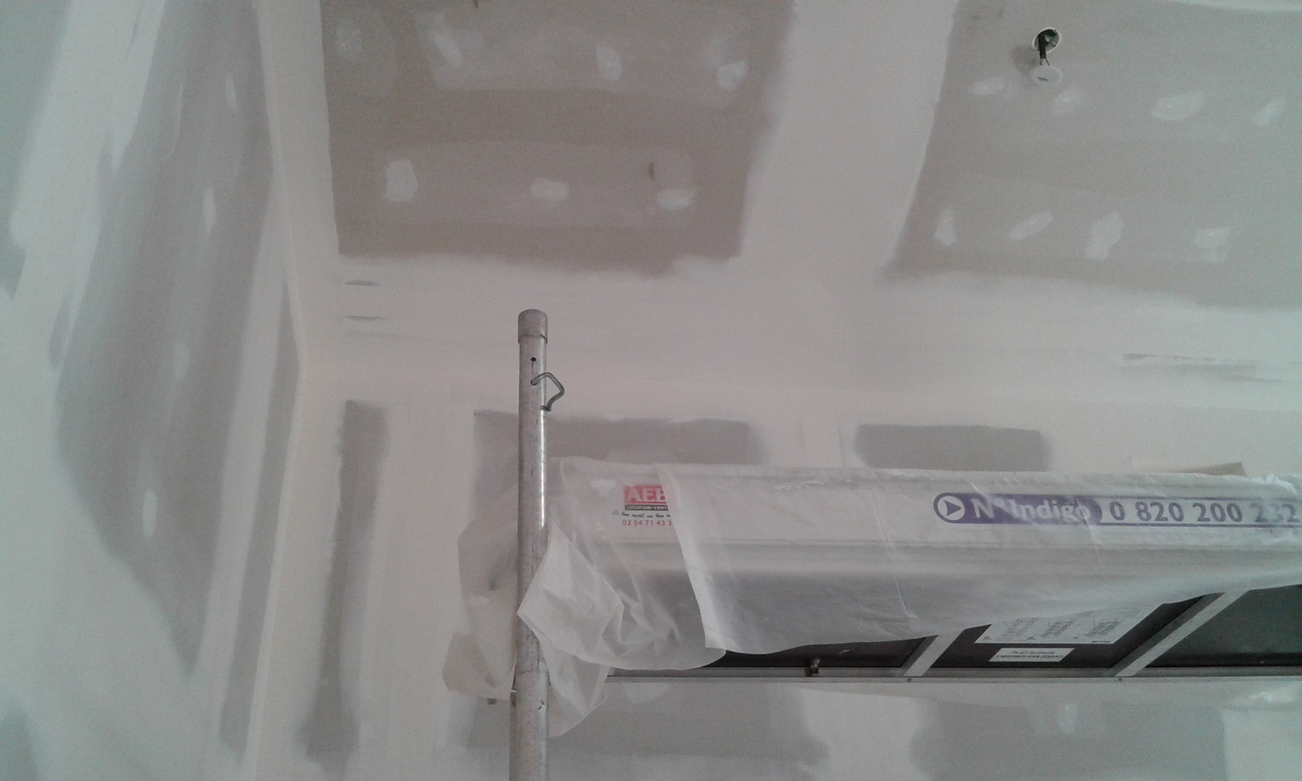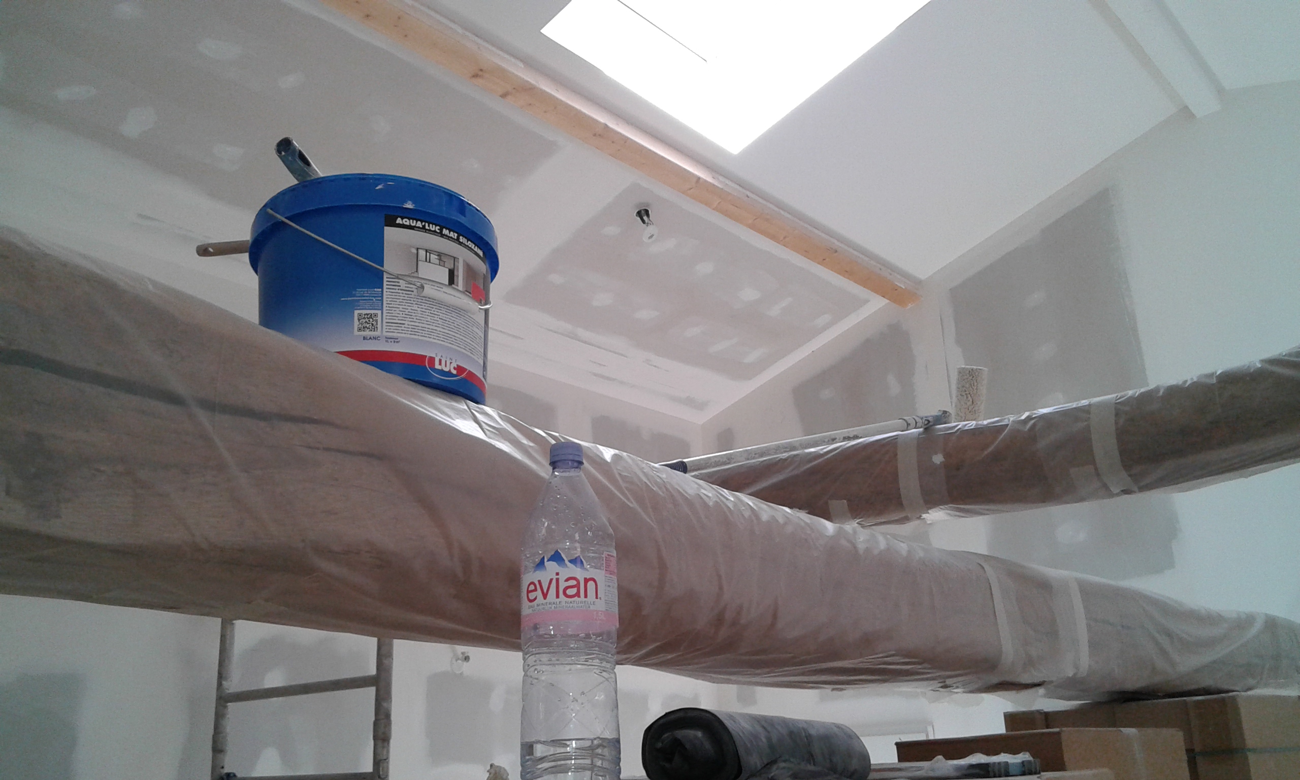 Le plafond a eu le droit aussi à un peu d’enduit avant la peinture