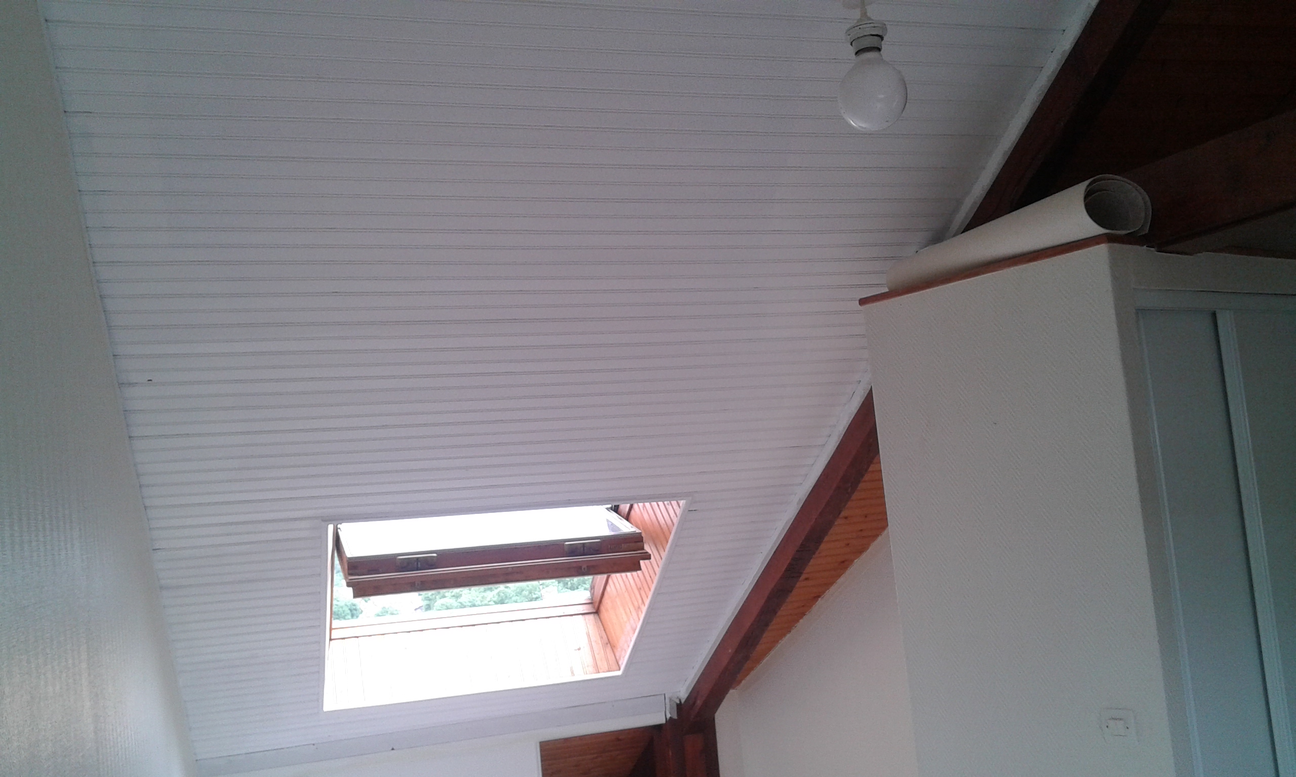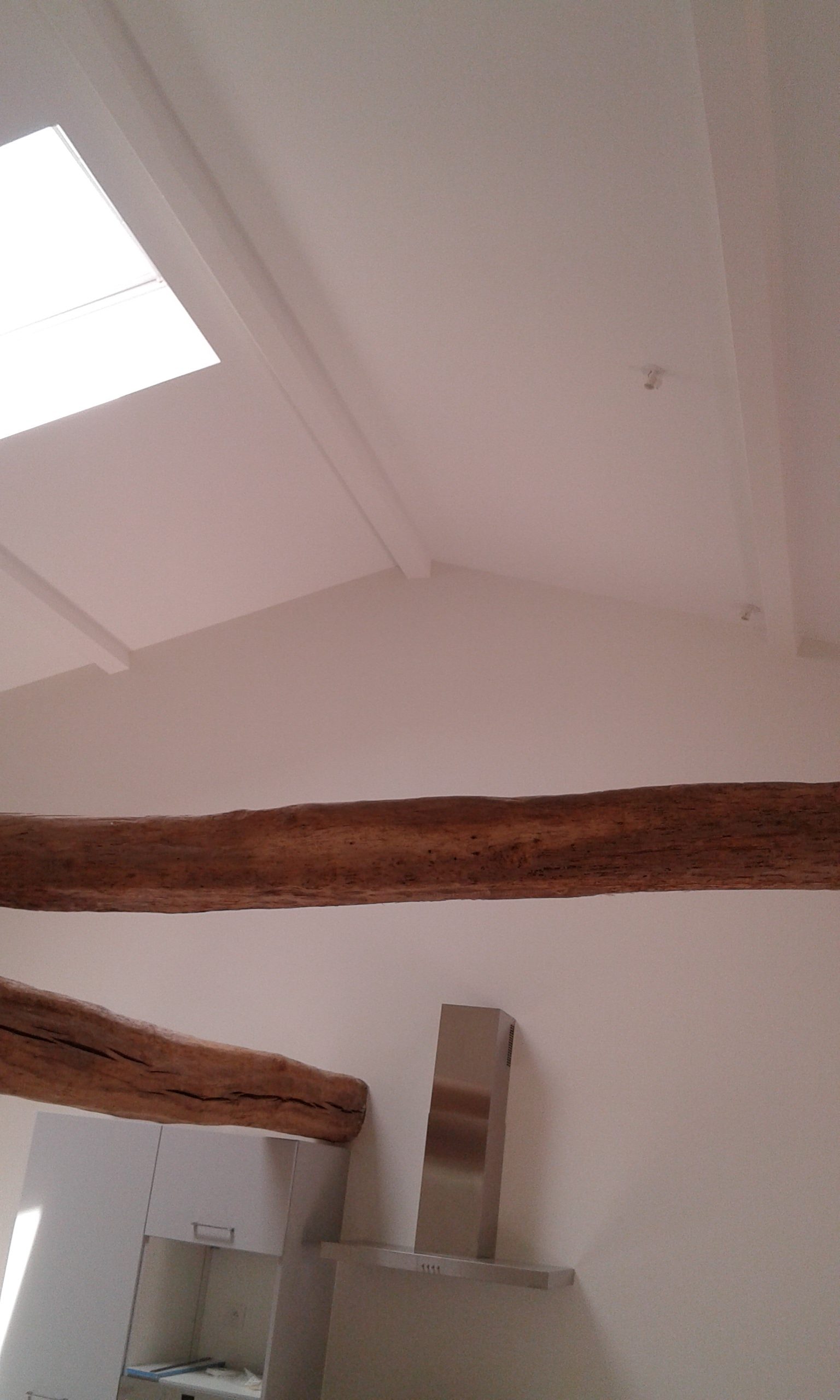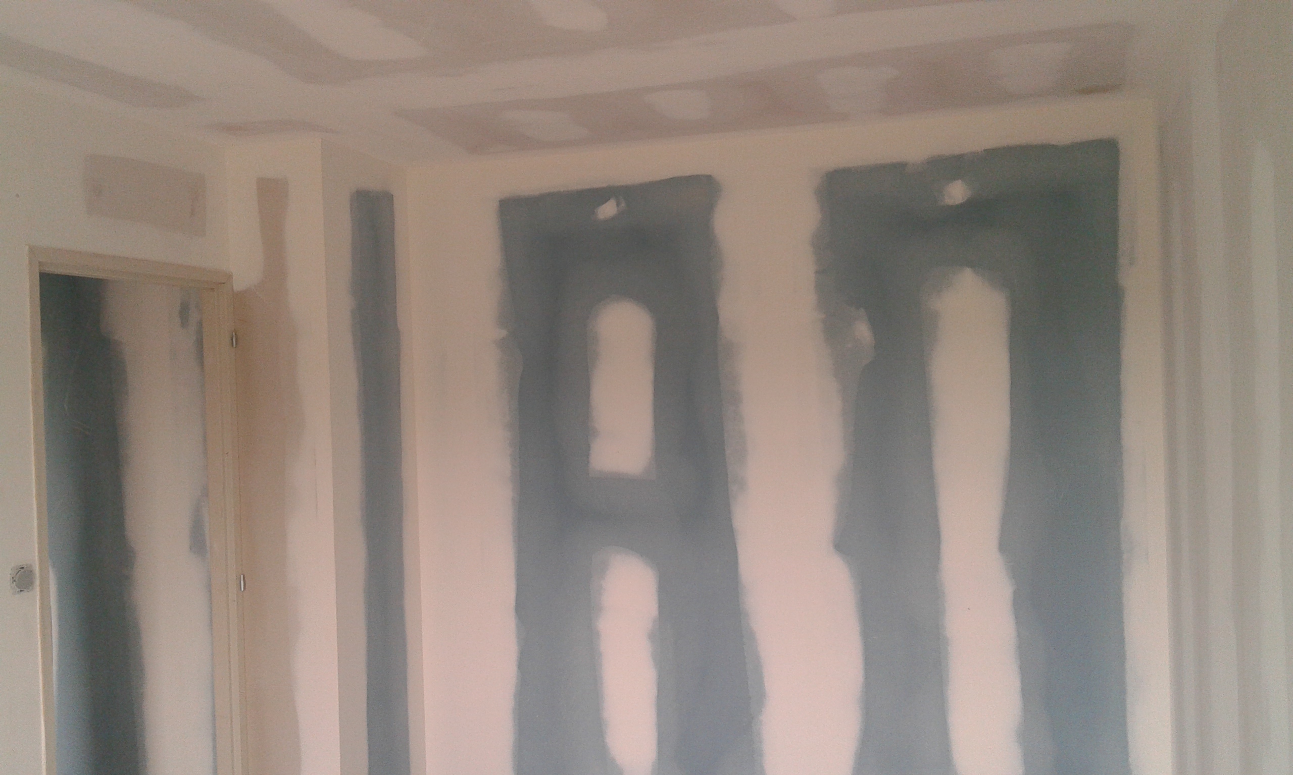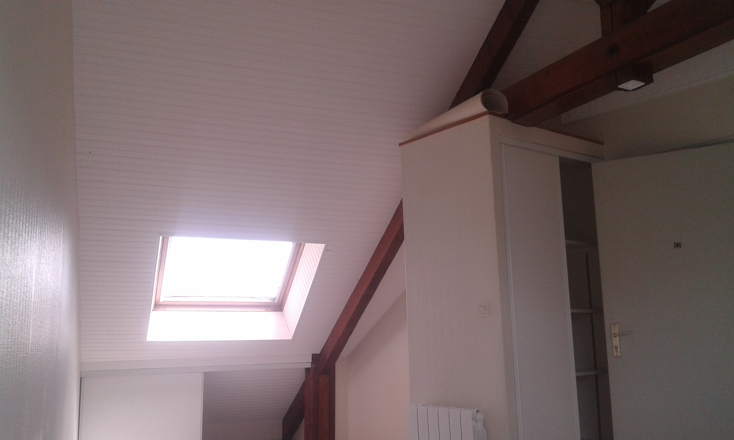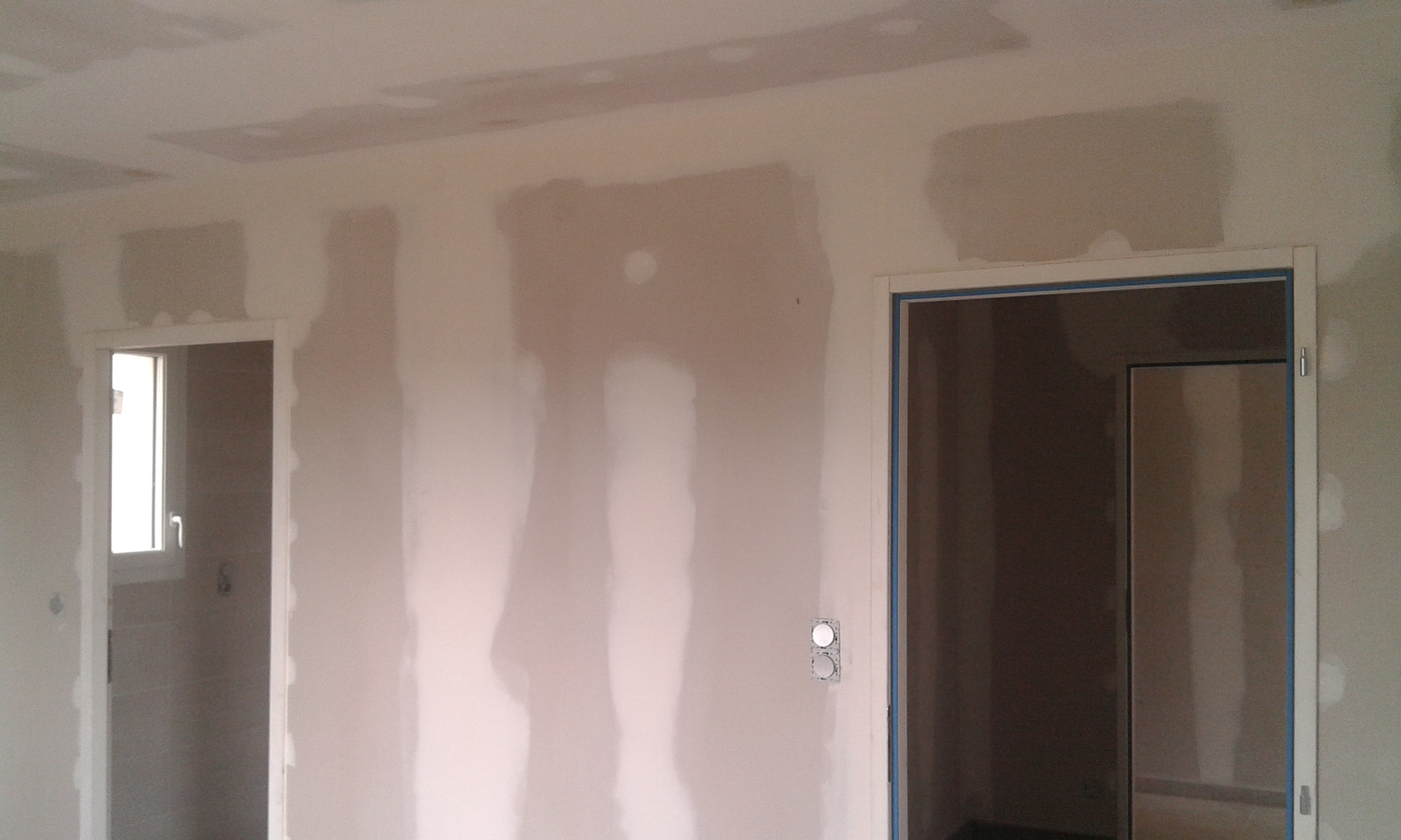 Le plafond a eu le droit aussi à un peu d’enduit avant la peinture