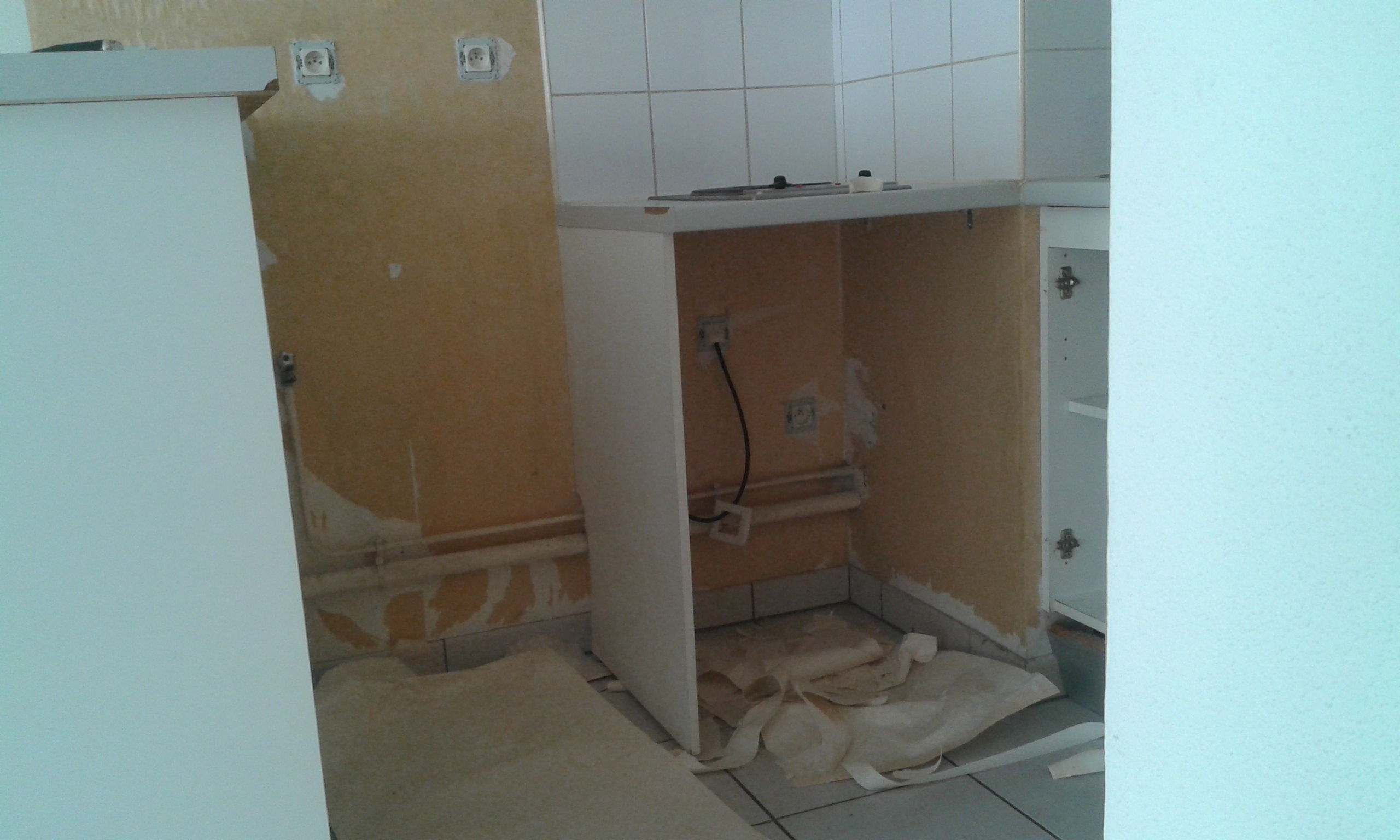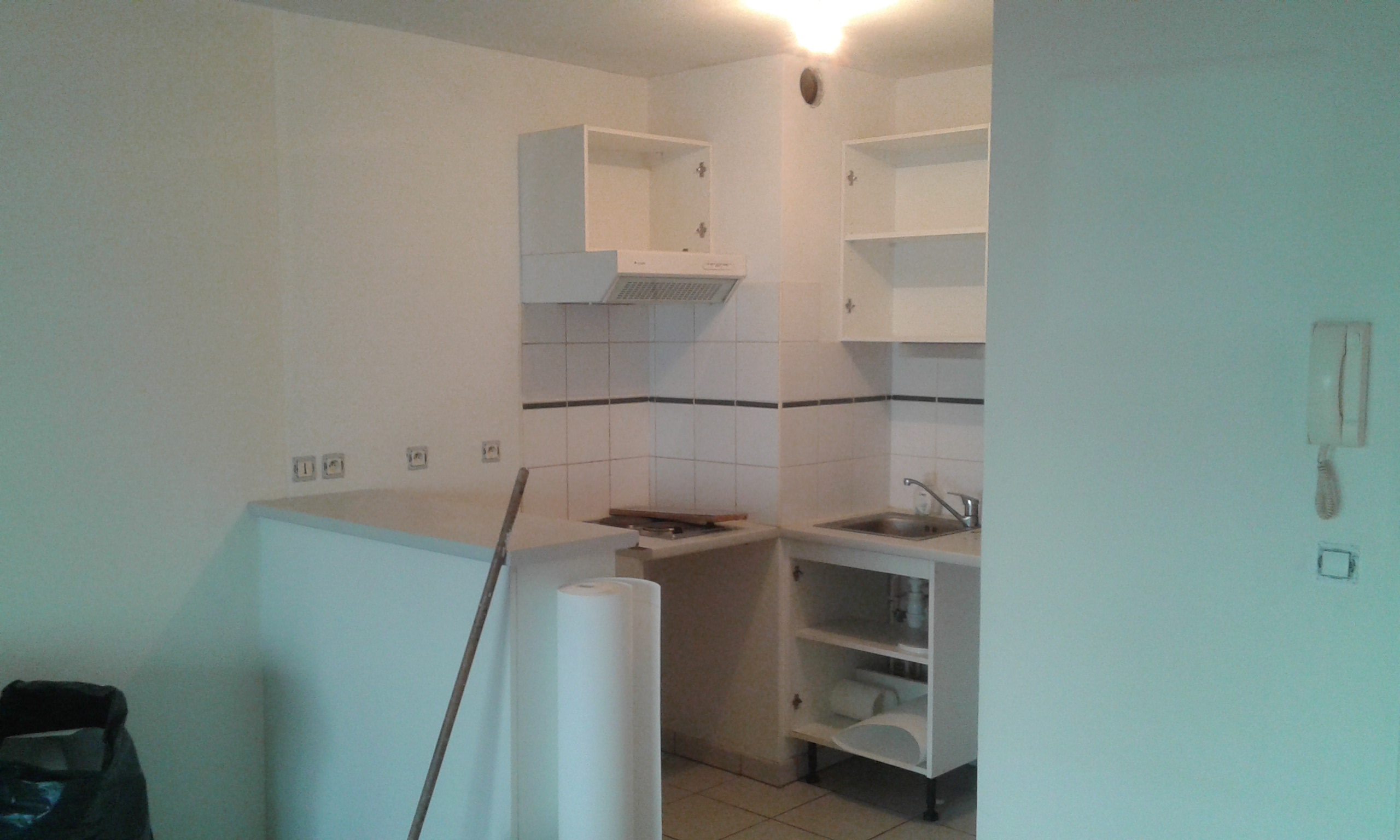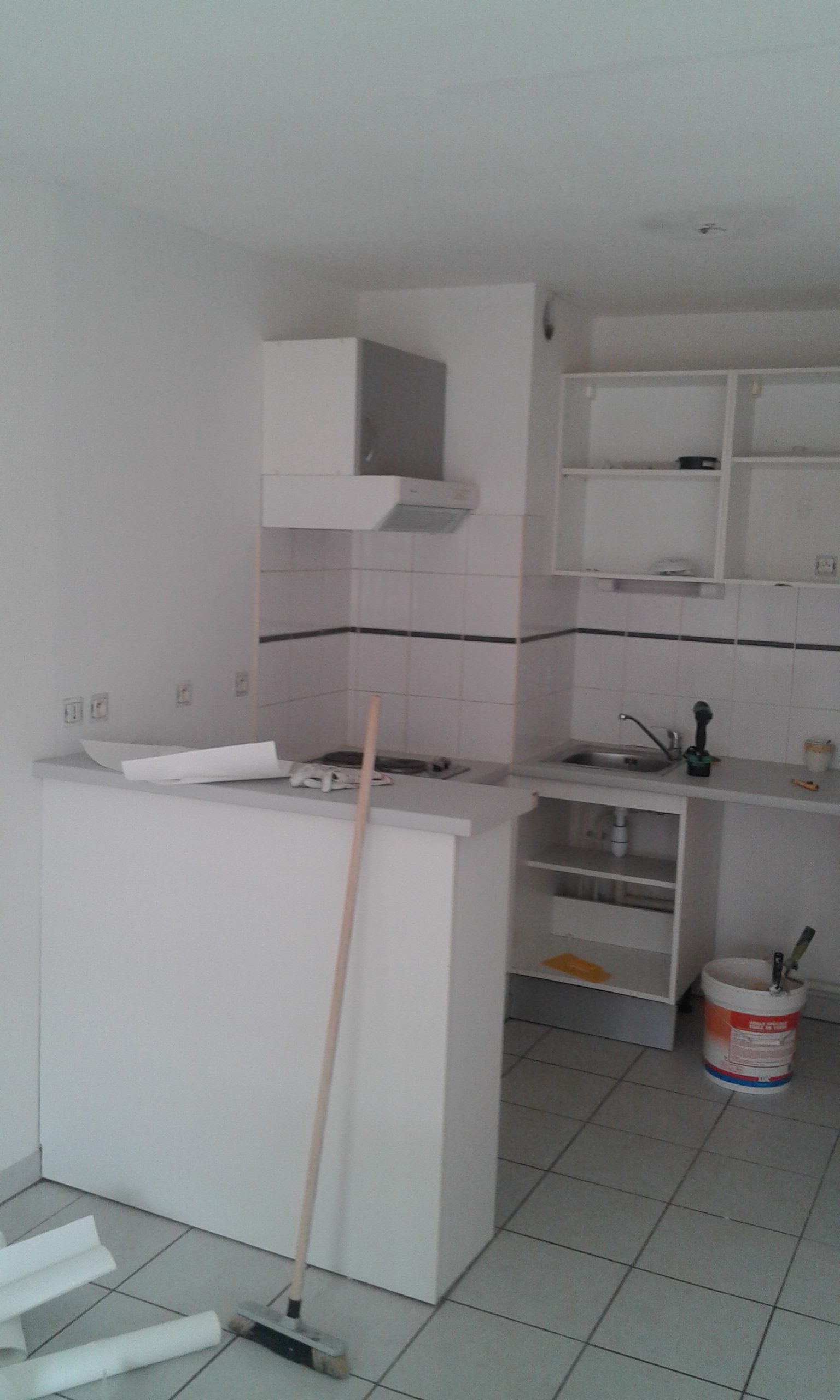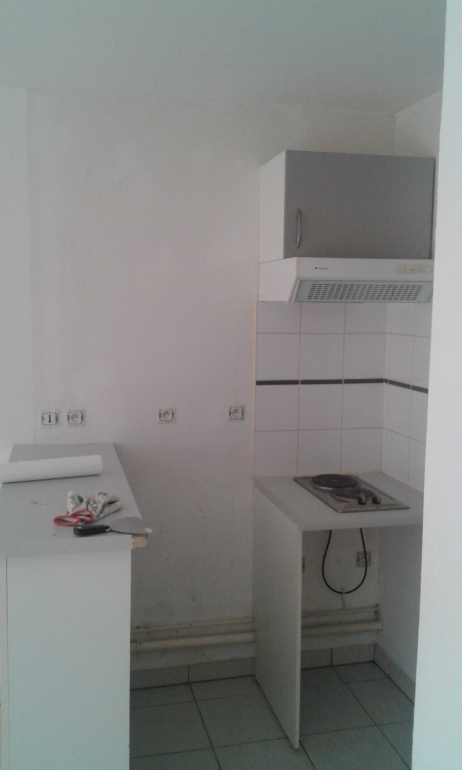 L’électroménagé fut retiré afin de pourvoir peintre la totalité des surfaces et d’obtenir une belle finition