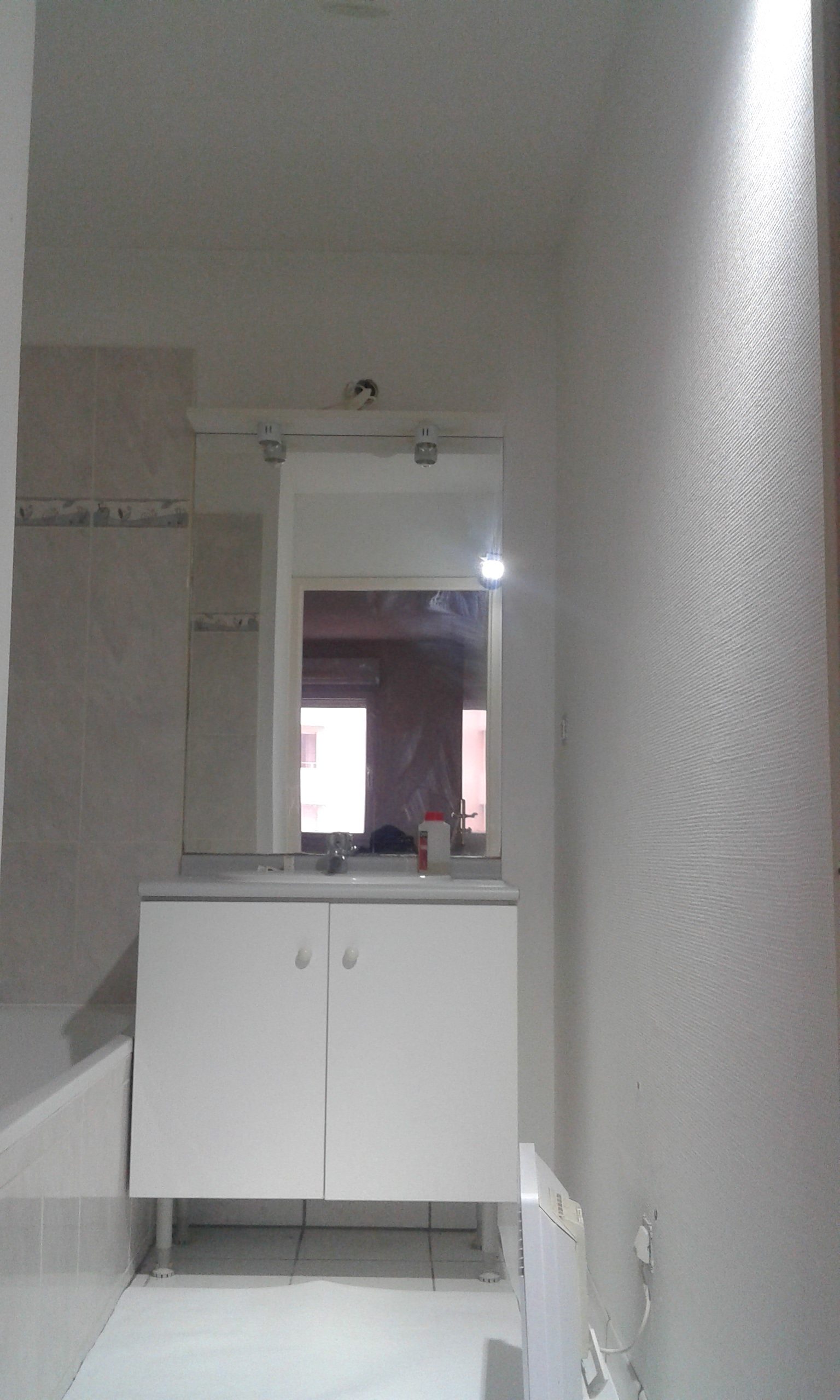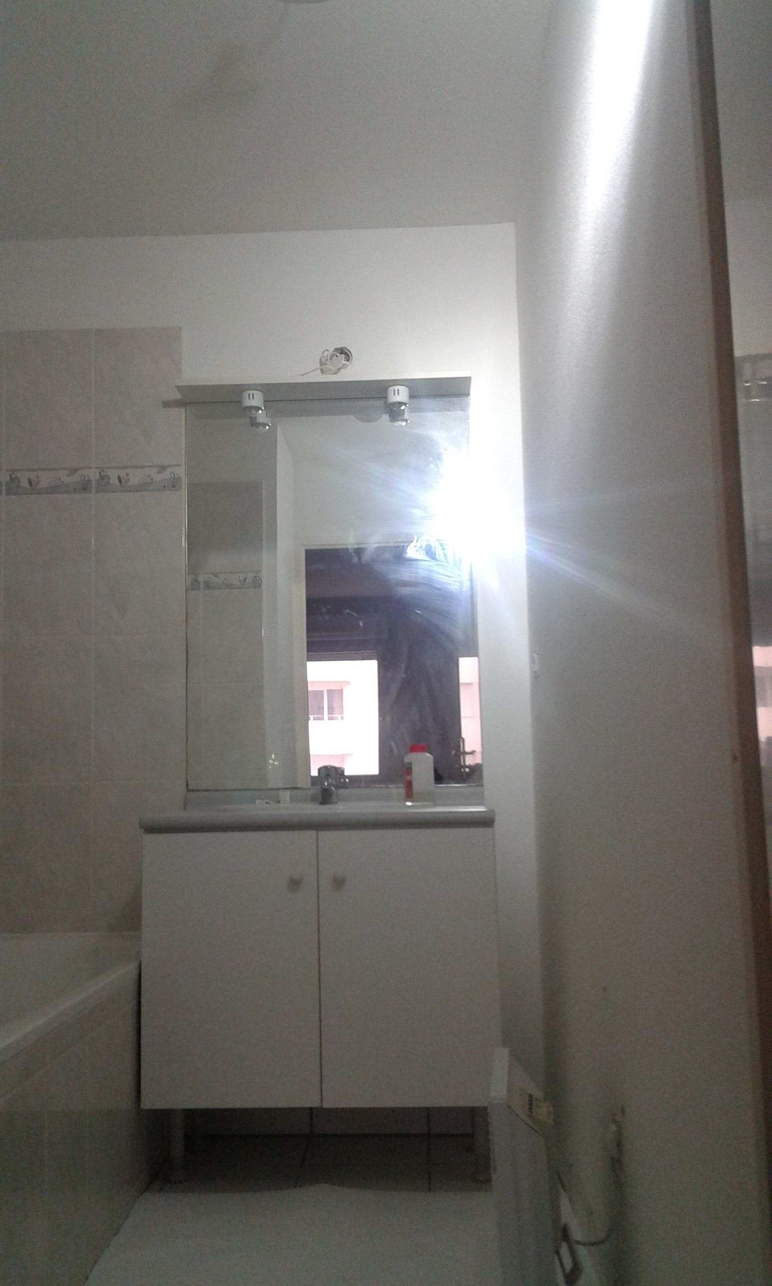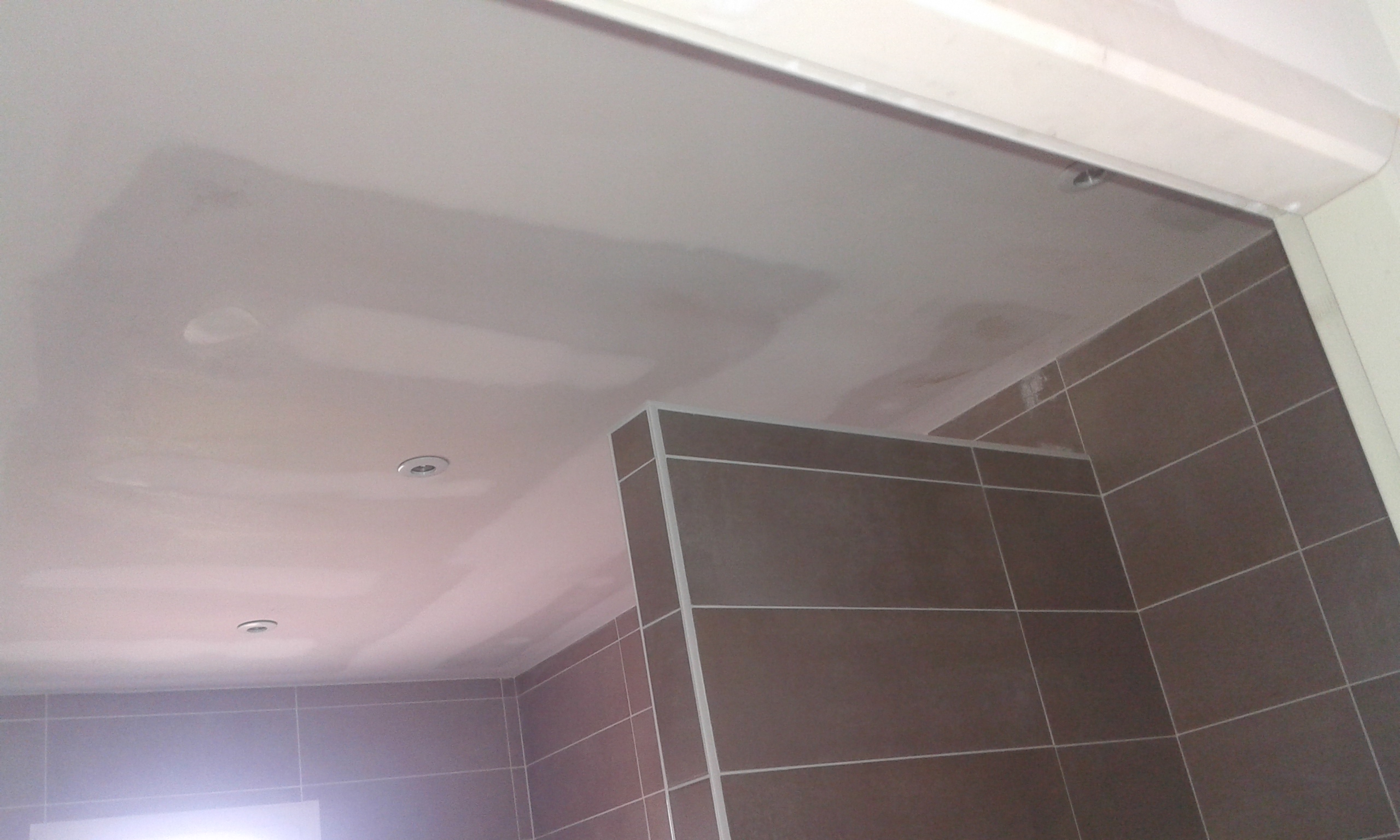 Plafond de la salle de bain prêt à recevoir la peinture