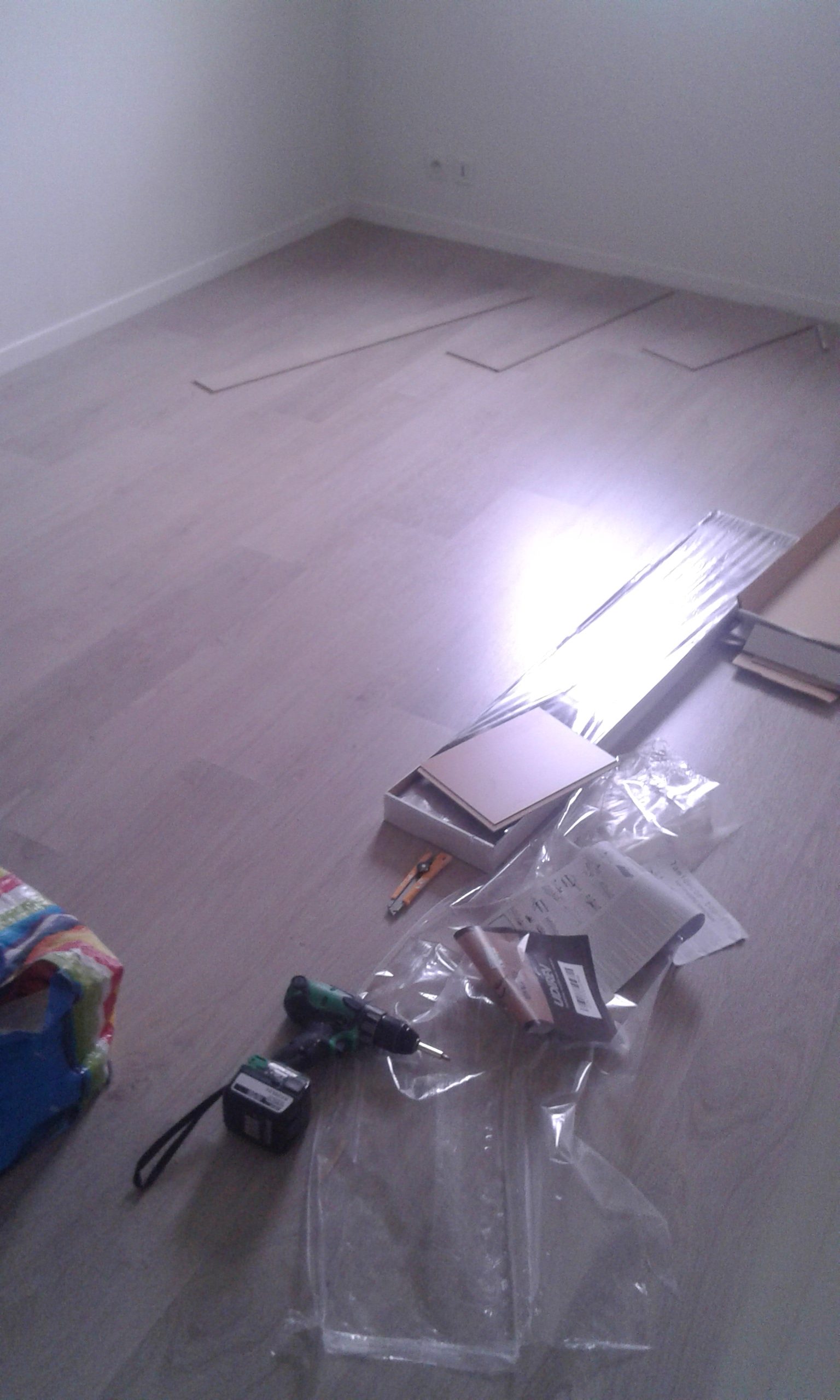 Le parquet est posé et le placard peint