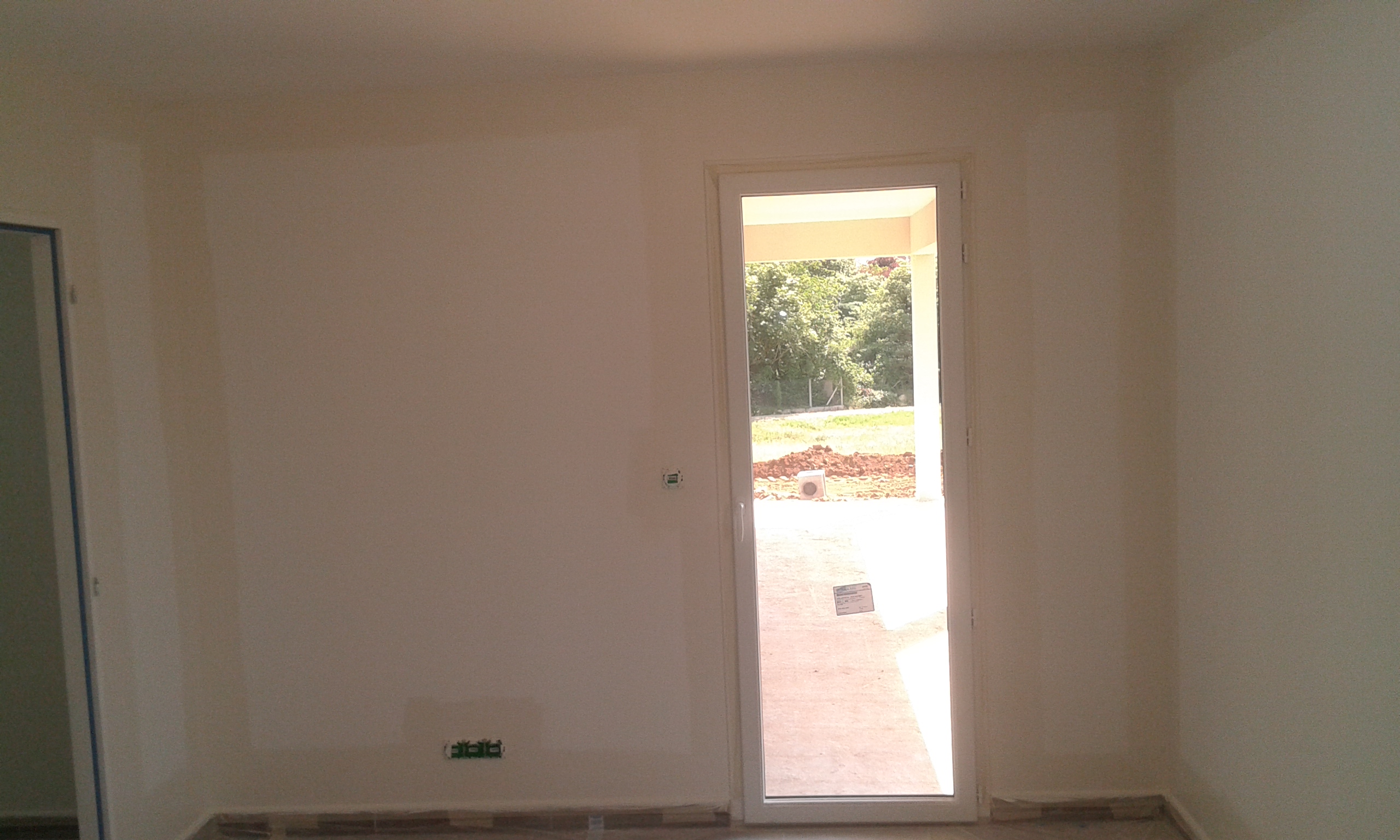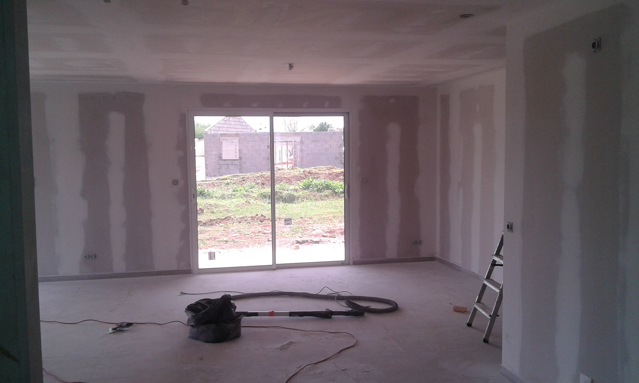 Salle de séjour avec sol et murs refaits.