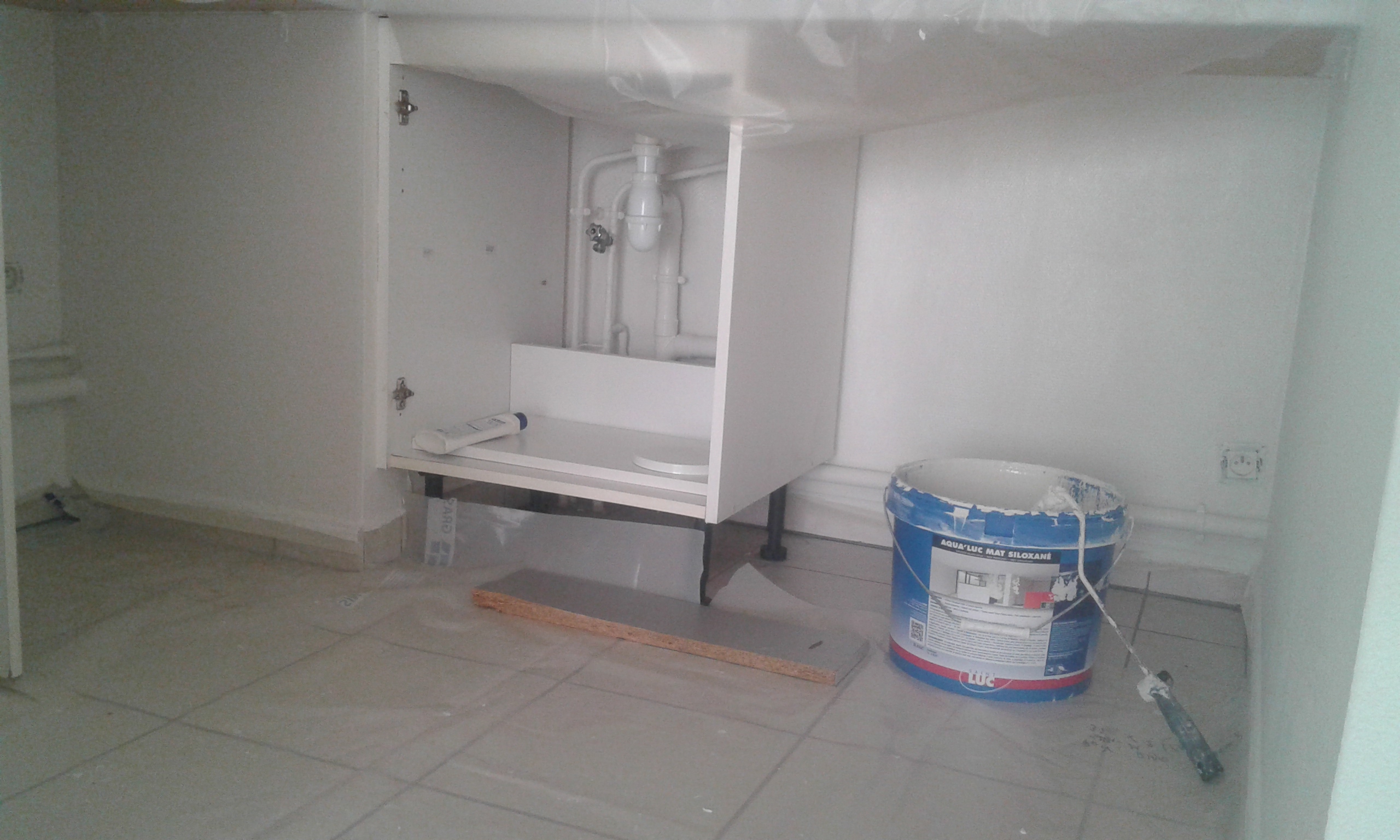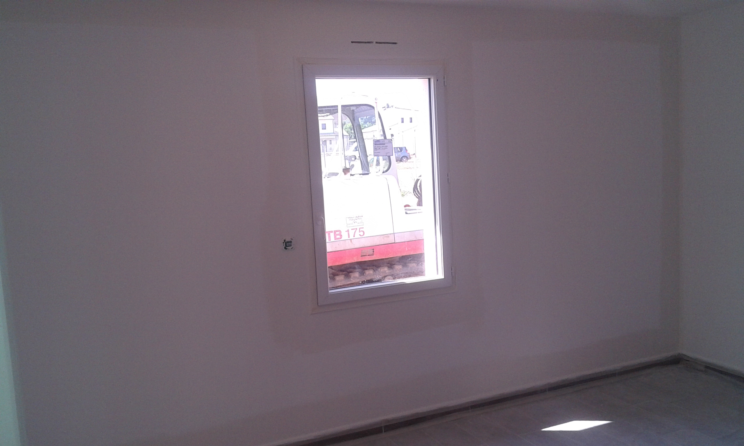 Le sol a été posé, les murs et plafond sont peints.