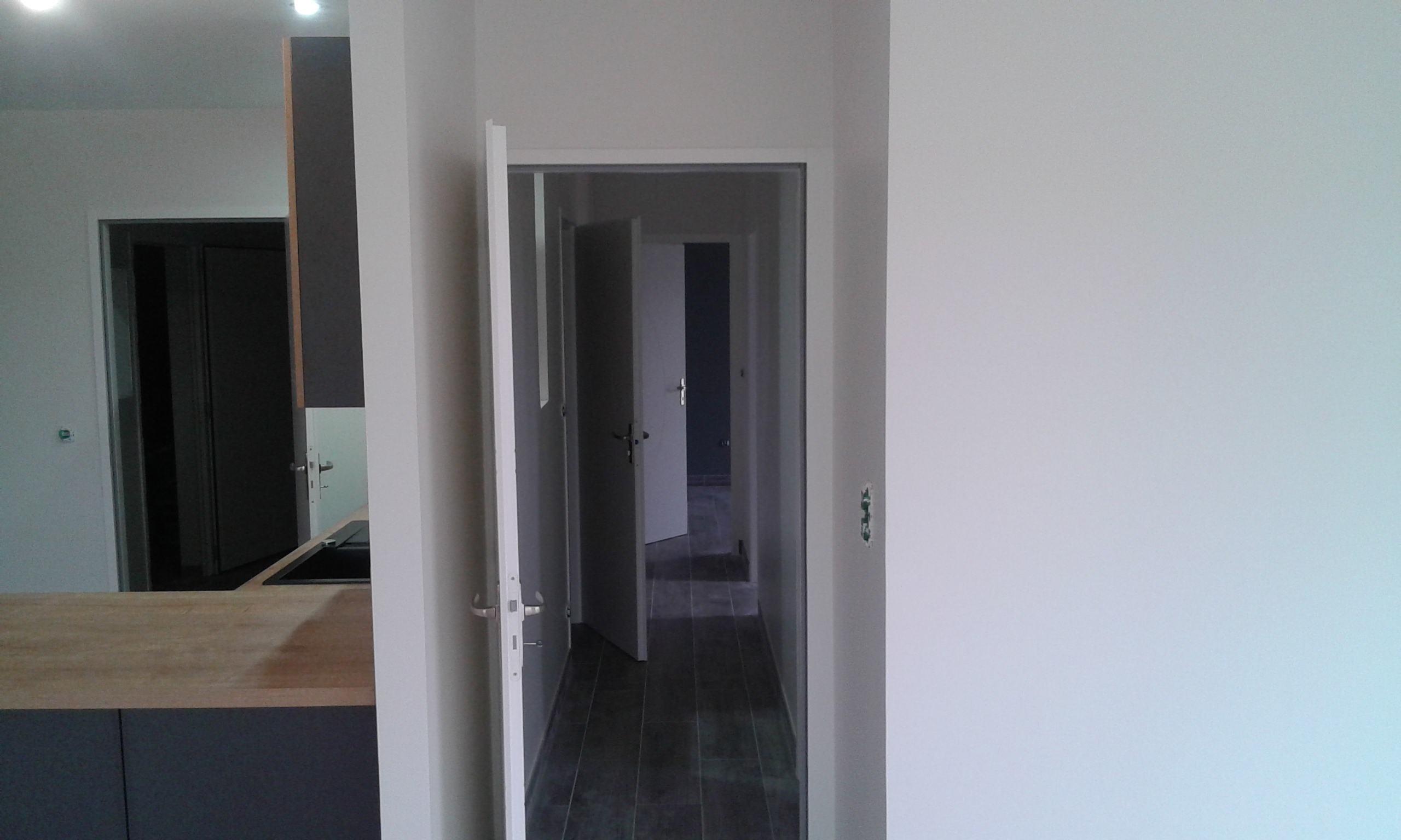 murs avec toile de verre, plinthes et plafond du couloir ont été repeints