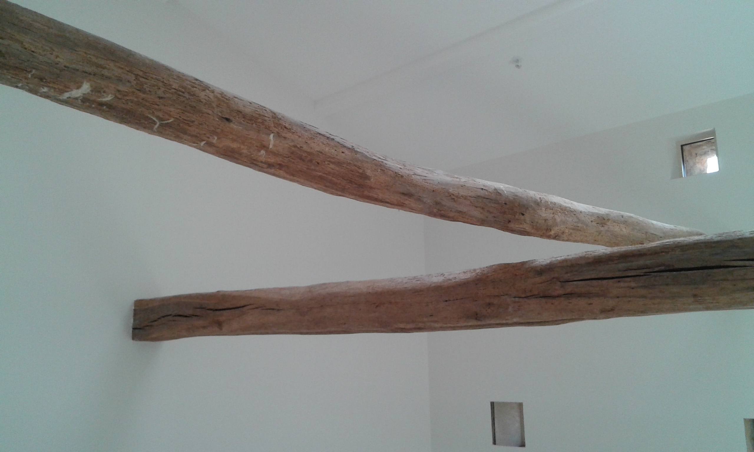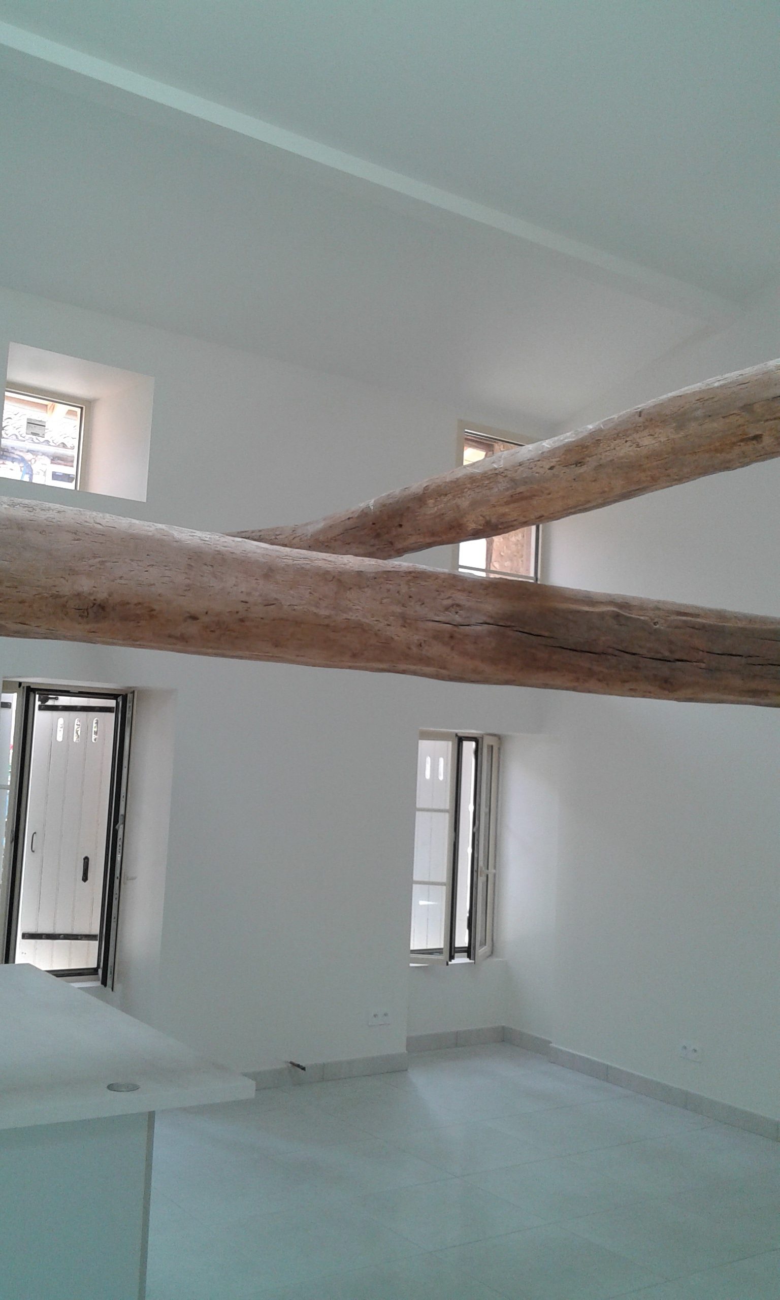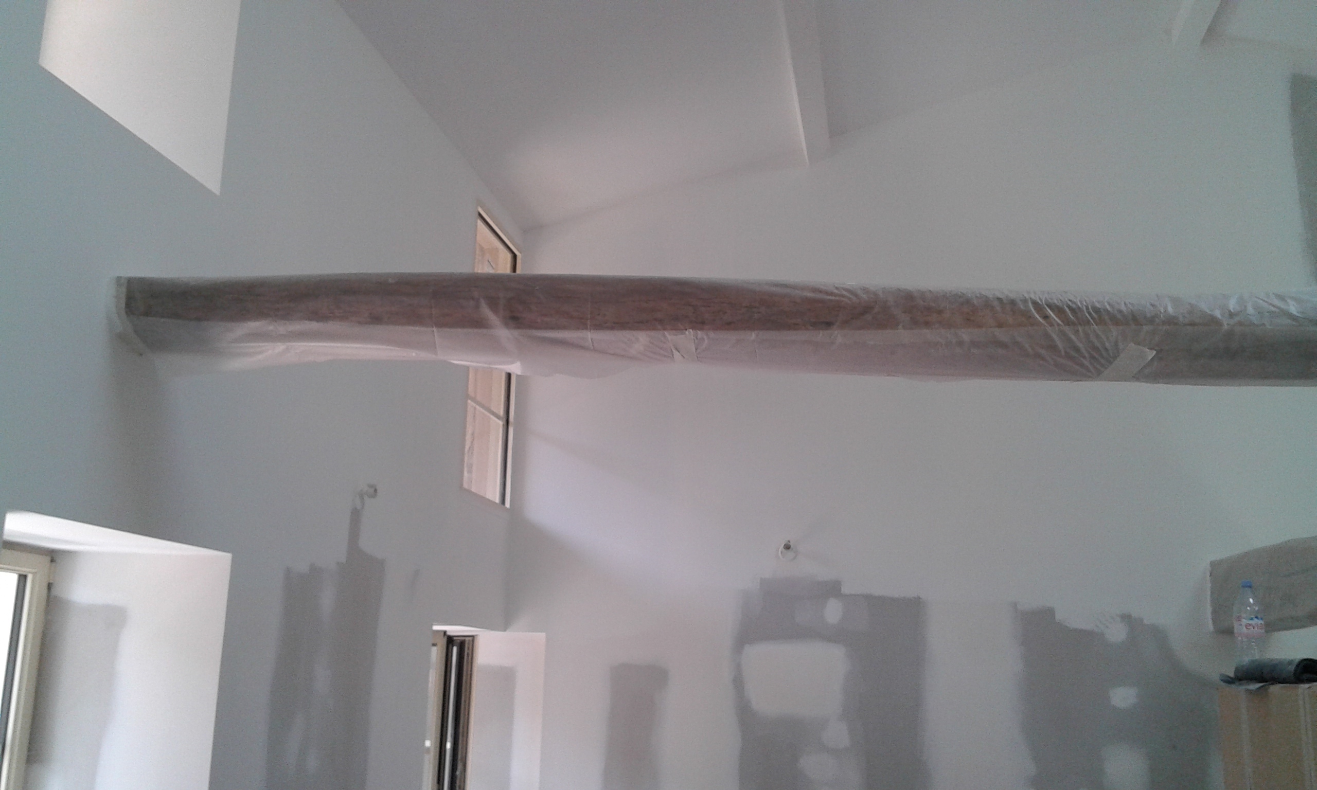 Murs finis et poutres débâchées