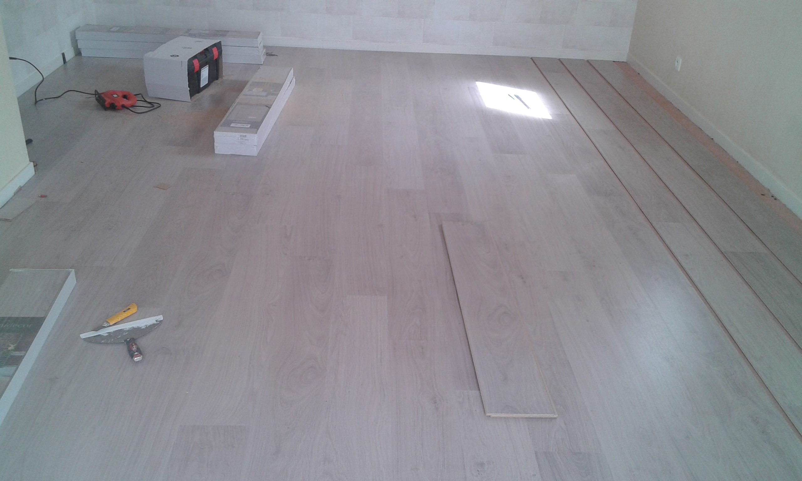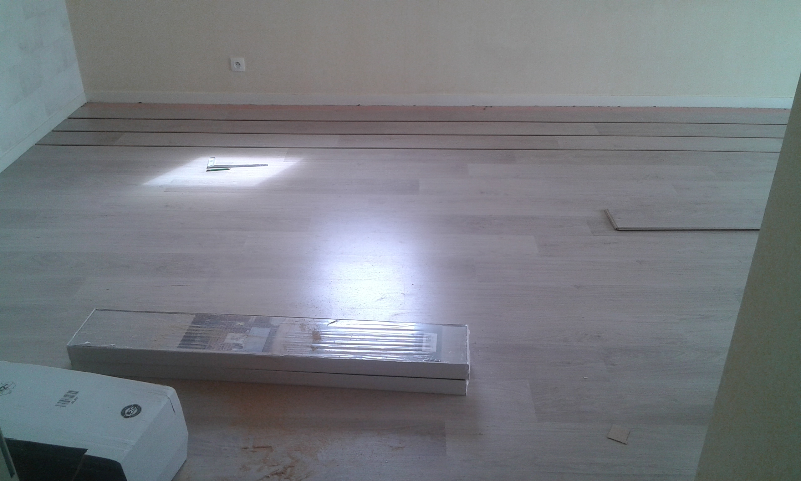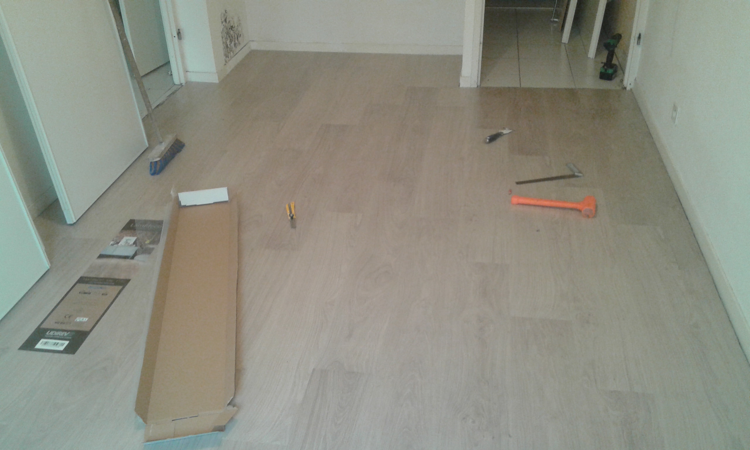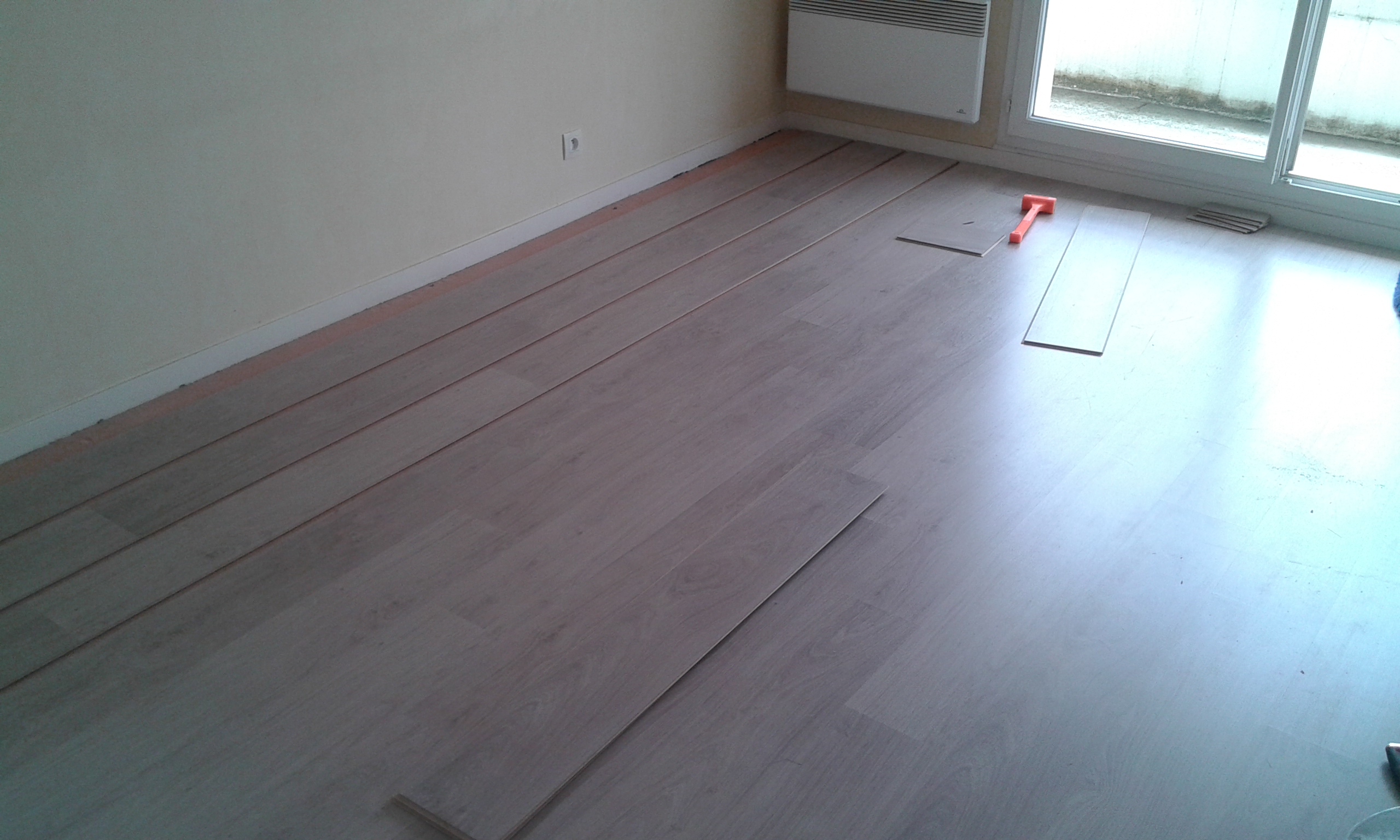 On colle le parquet au fur et à mesure