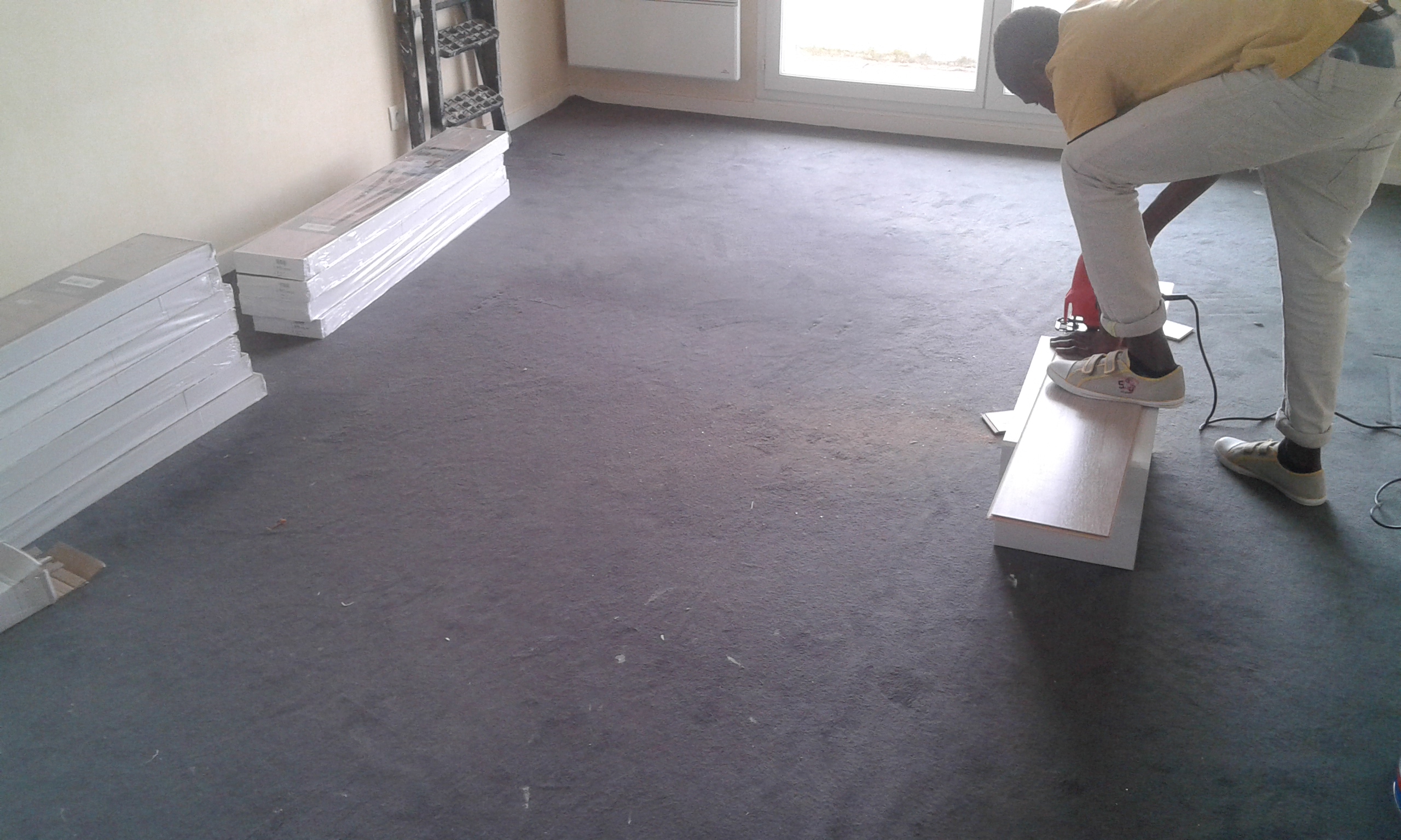 Pose du sol en cours.