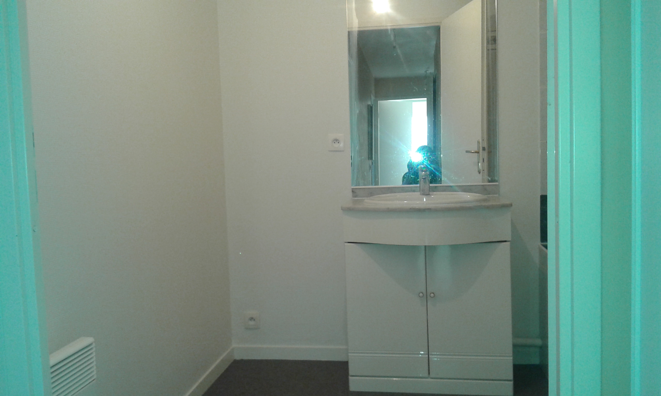 La salle d’eau avait des couleurs ternes