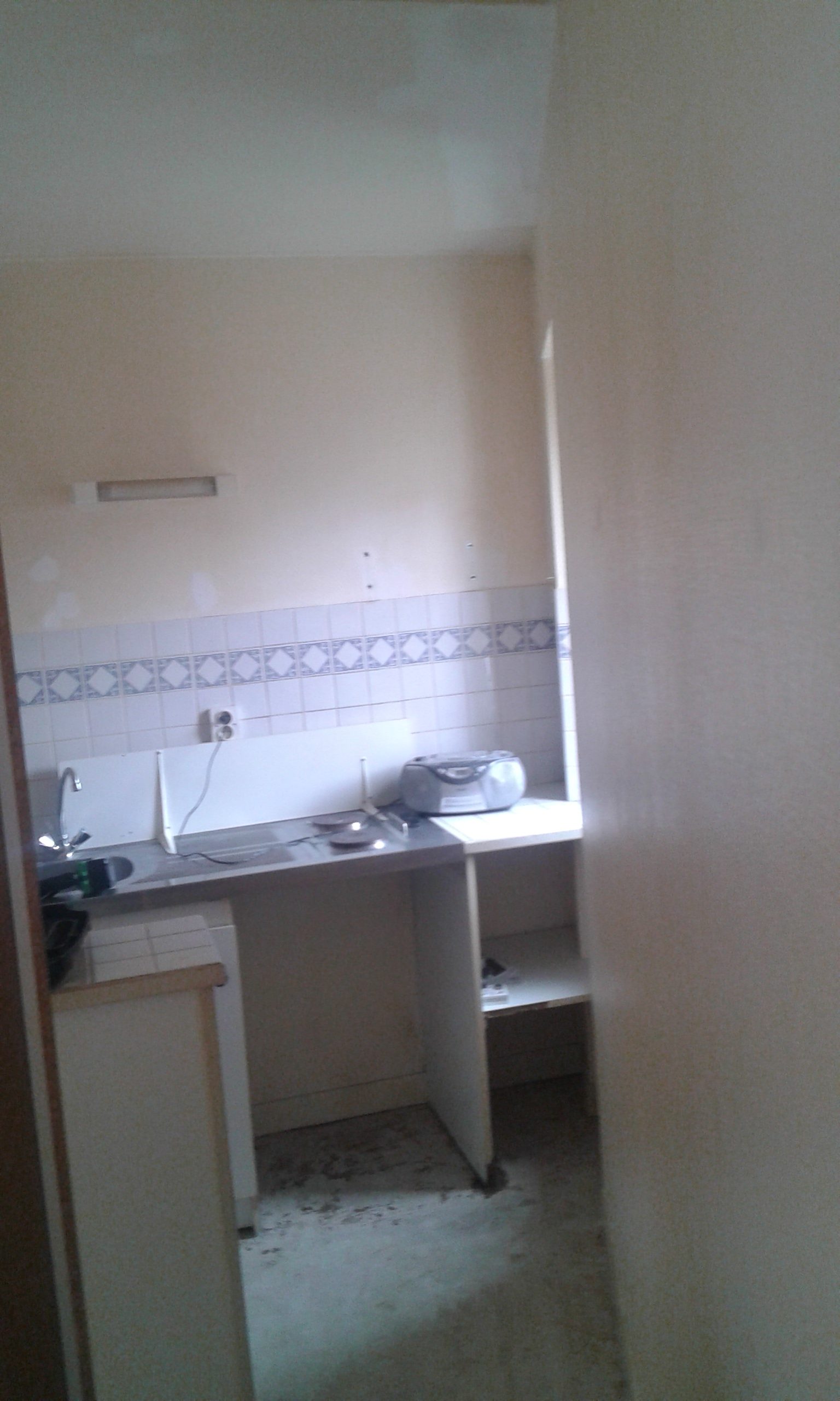 Sol et murs attendent n revêtement dans la cuisine.