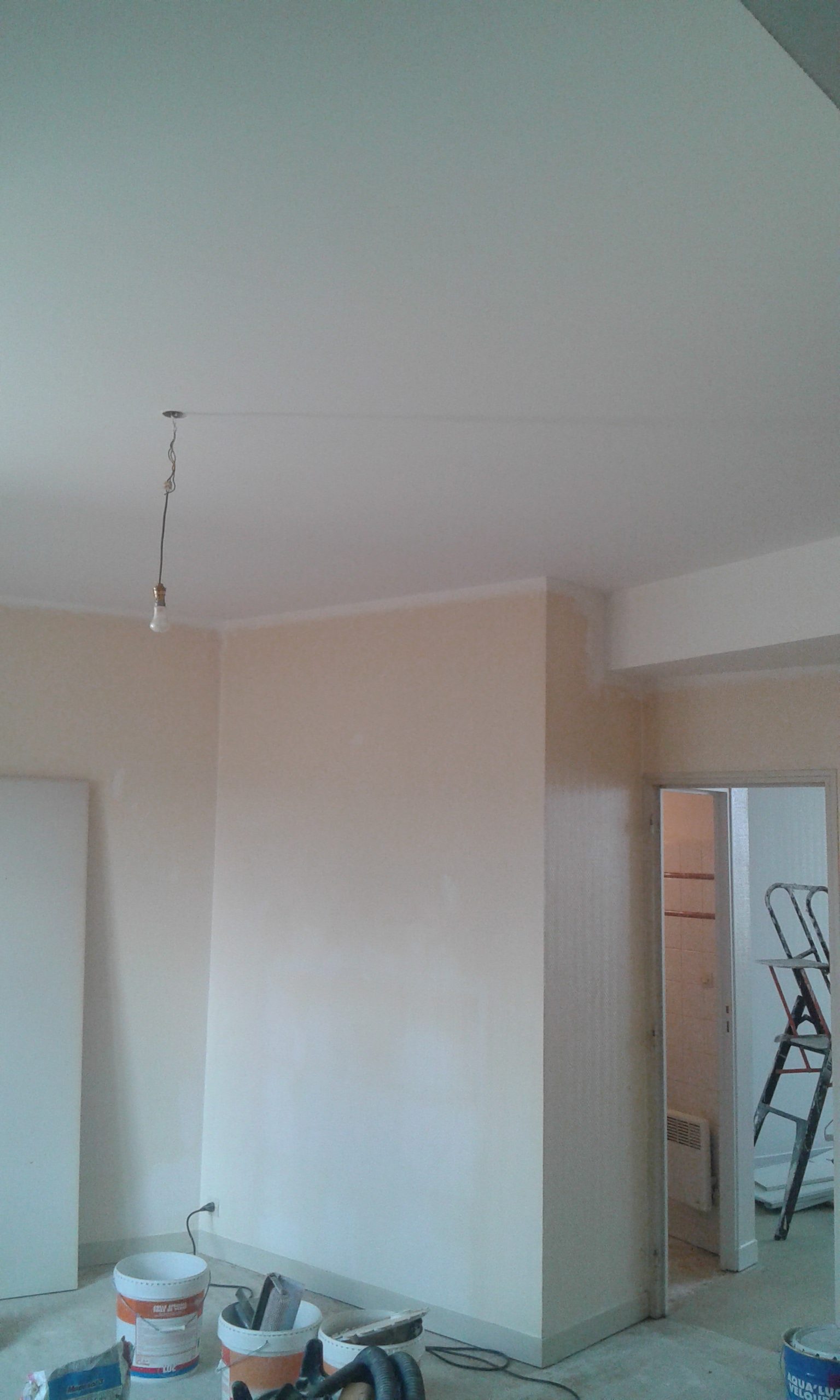 Le plafond a eu le droit aussi à un peu d’enduit avant la peinture