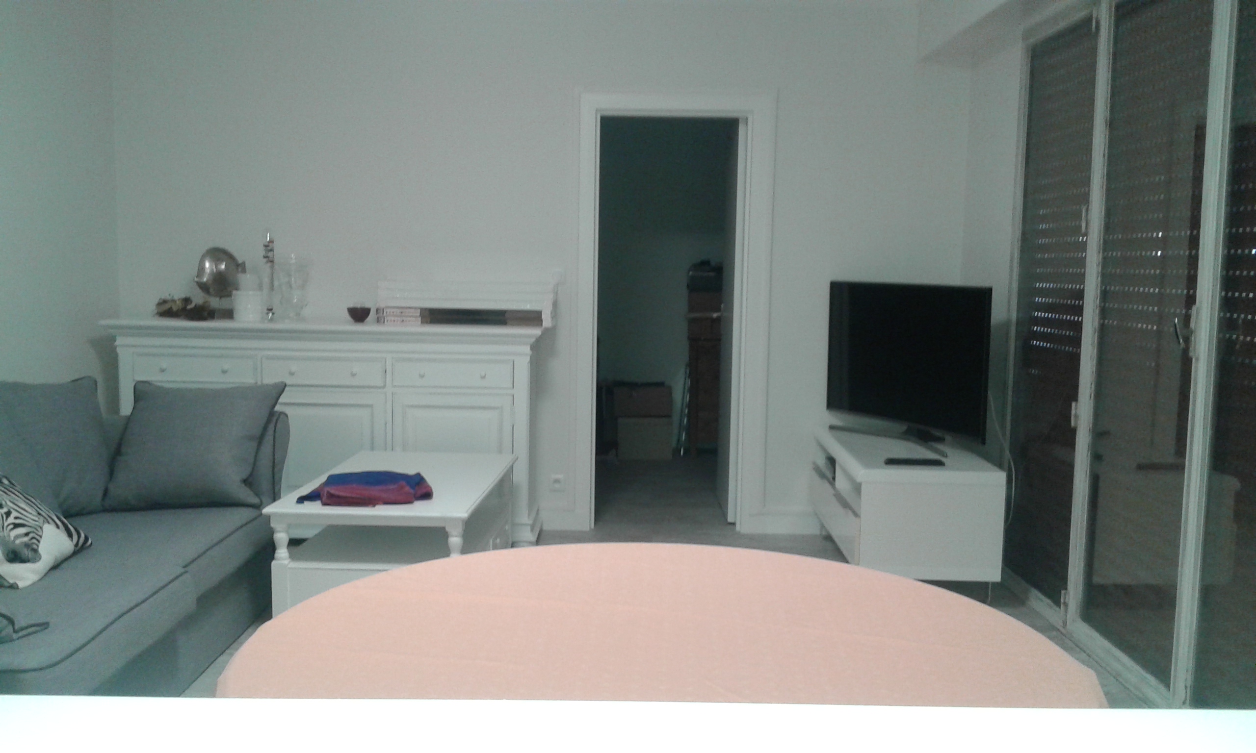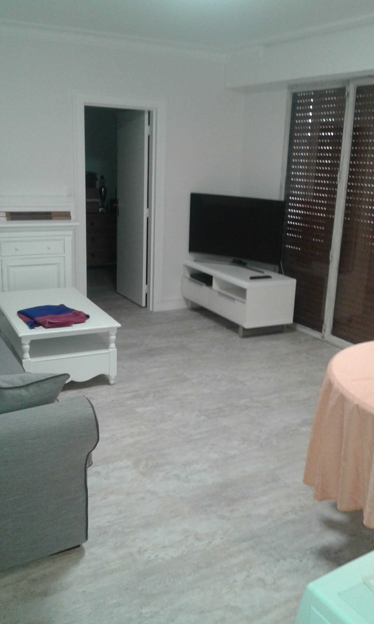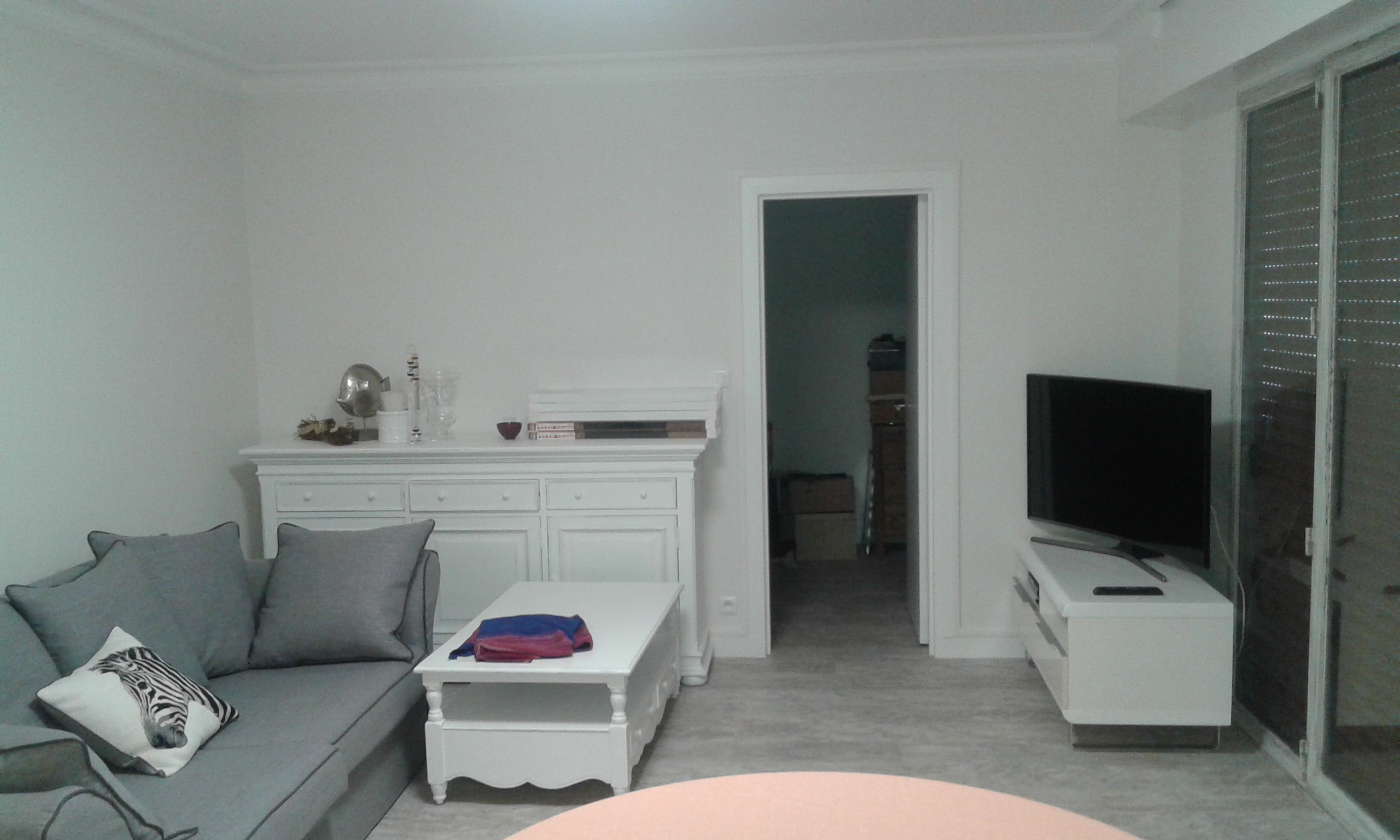 Salle de séjour avec sol et murs refaits.